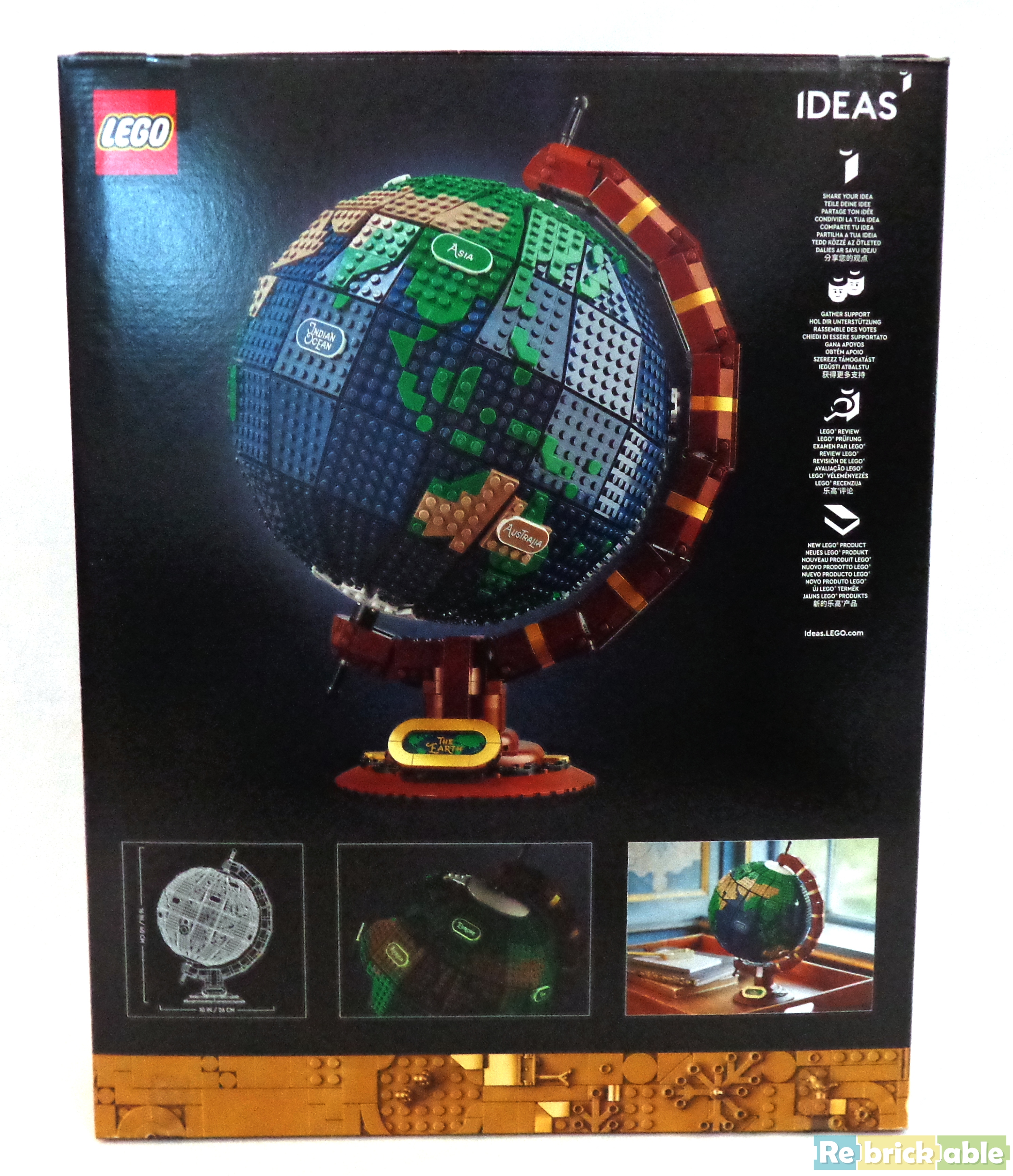 The Globe is LEGO Ideas' fortieth set, as shown on the front of the box. The original idea is from Guillaume Roussel, aka Disneybrick, a french designer who got the third place in the french edition of LEGO Masters last year.