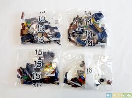 And now we go straight to the heart of the matter. Bags 8 to 11 give you the parts to build the northern hemisphere, bags 12 to 15 the southern one (including the lower part of the hub). To do so, you will have to build two submodels in sixteen copies each, and even if every four copies (2 of each), you have to do the plating / tiling and put the submodel in place, it quickly becomes really repetitive. However, it was difficult to deal with this situation differently and I really think that the instructions' designer did the best possible job given the inherently symmetrical nature of a sphere. I suppose that I wouldn't have felt this repetition effect so much if I hadn't built the sphere on my own and with no other pause than a few photo shots here and there.
