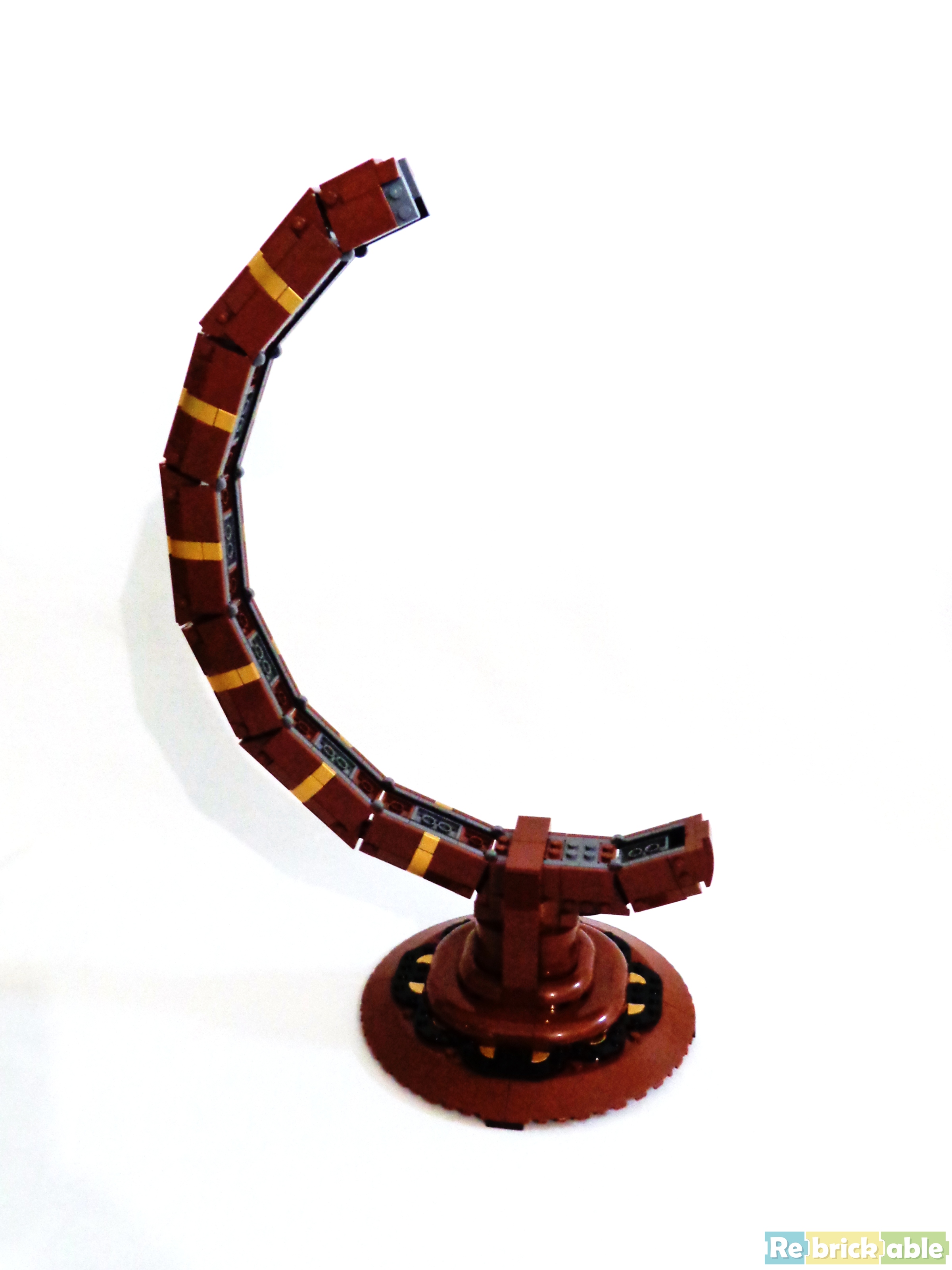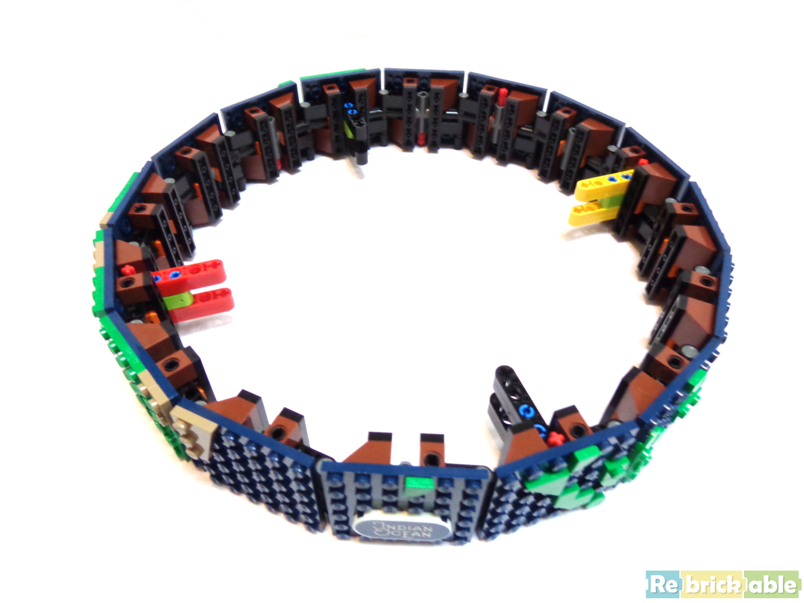 So, it's time to summarize. Technicaly the sphere is nicely shaped, even if from a short distance, some gaps are too obvious, mainly between the 2x6 wedge plates and the 4x6 plates. But we're talking about a sphere made out of polygons, so I want to be indulgent. The Globe rotates quite smoothly around the axle and is sturdy enough to be moved without falling appart. When the sphere isn't attached to the support you can manipulate it quite easily without making it collapse. Like I said earlier, the less sturdy connected part of the build is the label on the base.