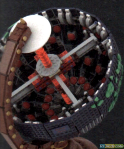 Once the northern hemisphere is finished I doubt it's possible to make a pause unless you keep the sixteen segments and the lower part of the hub aside before putting them in place in a row, just before finishing the build. Talking about the hub, I said earlier that it's quite different from the original version because a small picture shows it page 7 of the booklet, as you can see, it relied a bit more on bricks.