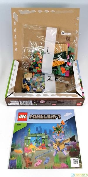 LEGO® Minecraft® The Guardian Battle (21180) takes players aged 8+ on an underwater adventure filled with familiar characters and features from the best-selling game.Oceans of fun for Minecraft playersKids take on an action-packed challenge in this engaging Minecraft mission set beneath the ocean. First, they must build a monument amid the colorful coral reef. There’s hidden treasure to find, but also 2 iconic Minecraft mobs: a guardian and an elder guardian, who are determined to stop them. Armed with a trident and assisted by 3 helpful axolotls, kids must fend off the hostile mobs to continue their mission. Added danger comes from a spring-loaded shooter that launches a laser missile with a flick of the larger guardian’s tail. With endless creative play possibilities, this LEGO brick adventure put all the excitement of the Minecraft game into kids’ hands. From LEGO.com