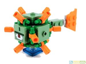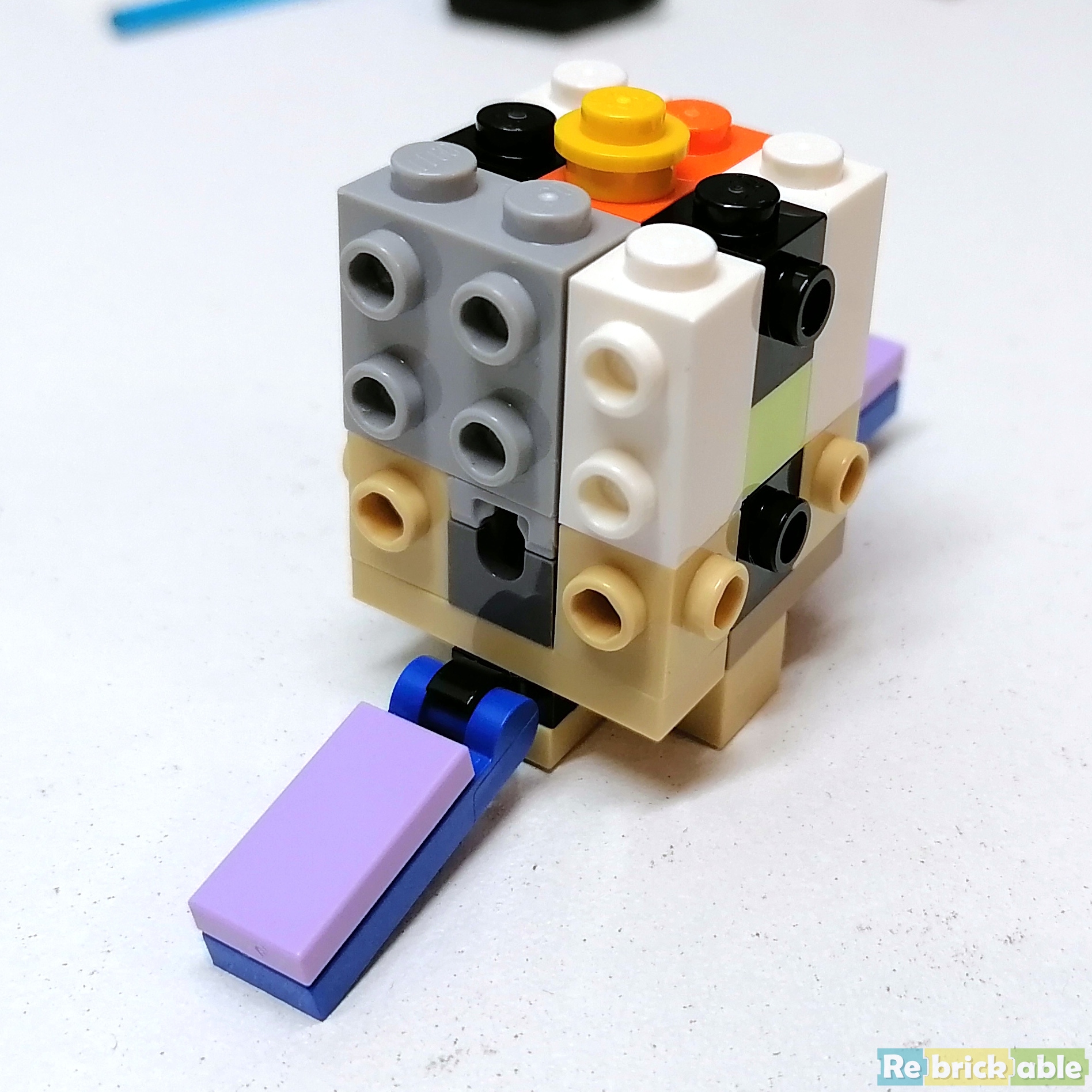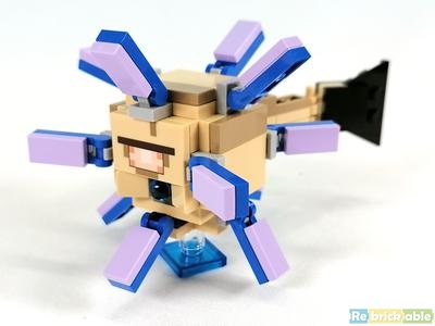 On to bag 2, containing the glow squid, the Elder Guardian and another axolotl. This guardian is a bit bigger, with a 3x3x3 SNOT-core. In the center comes a launcher, so I assume an elder guardian can shoot things?