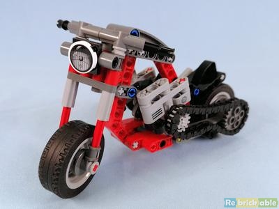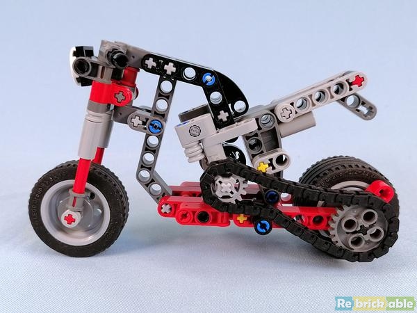 I absolutely love this little model. Not least because it almost exactly resembles (within the constraints of medium and scale) a 1:1 bike that a mate and I sketched out, with a view to building, almost 30 years ago. Round about then, he became a parent and I migrated to Australia which rather scuppered our joint bike building efforts. However, I think he may be receiving a small Technic Christmas present this year, in memory of what might have been. Better yet, his current 1:1 ride is a "desert sled" which isn't a million miles from the B-model.