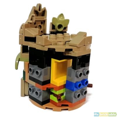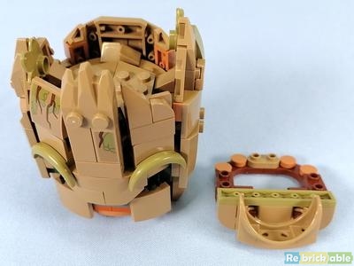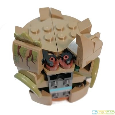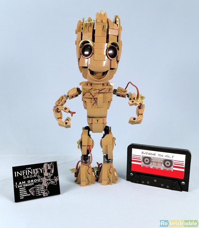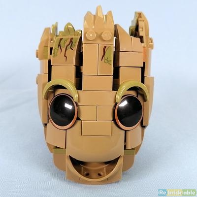 Let's start with the positive: Groot looks so very cute! It feels like a good representation of the real-life (computer generated) character, and the designer nailed the facial expression. The cassette tape is a very nice side-build, and the plaque, while useless, at least gets the right mood for Groot. The head is a complex build with techniques that had me surprised multiple times.