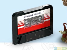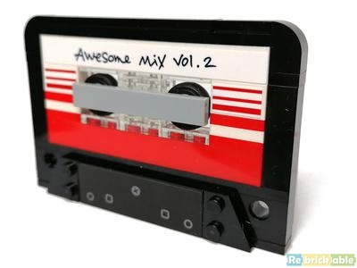 Next is the cassette tape with the Awesome Mix. The wheels are held in place with a tile on the back, which is not strictly necessary. The rubber of the tires is keeping it neatly in place, as long as you don't play with it.