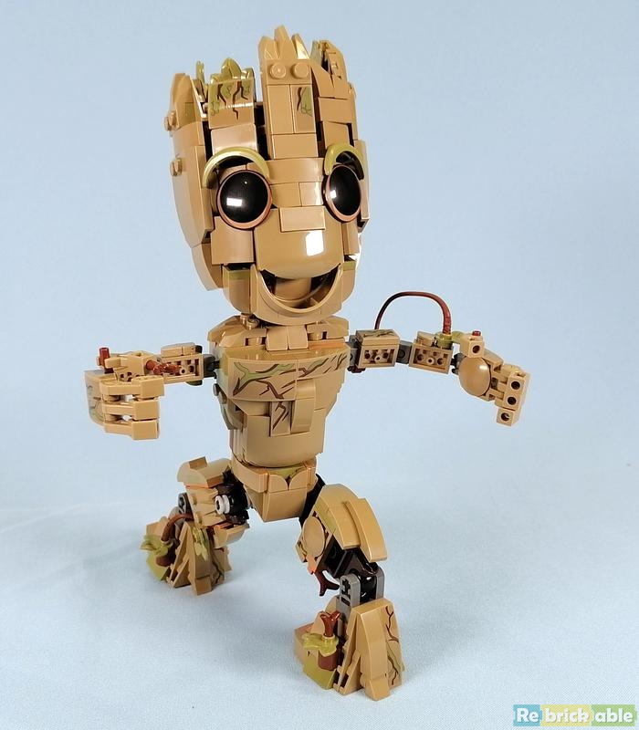 But on the cons: Aside from the head, the build is very standard, similar to the feel I had for the 76219-1 Spider-Man & Green Goblin Mech Battle. And while the head is complex and interesting to build, it also had me frustrated sometimes. The further I got in the build, the more fragile the model became. Some sections I had to re-add several times. The curved bricks under the eyes are especially fragile. Ultimately, I didn't bother with getting the pieces back on the bars. I just held them in place, and after adding the nose sections, they can 'float' loose in the model. Now, the one thing you want with a set like this, is to display Groot in a nice pose. As I mentioned, the legs can only move back and forth, and the ball joints are not as rigid as I would like them to be. I was able to balance Groot on one leg, but he falls over very easily in that position.