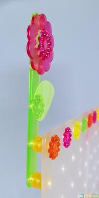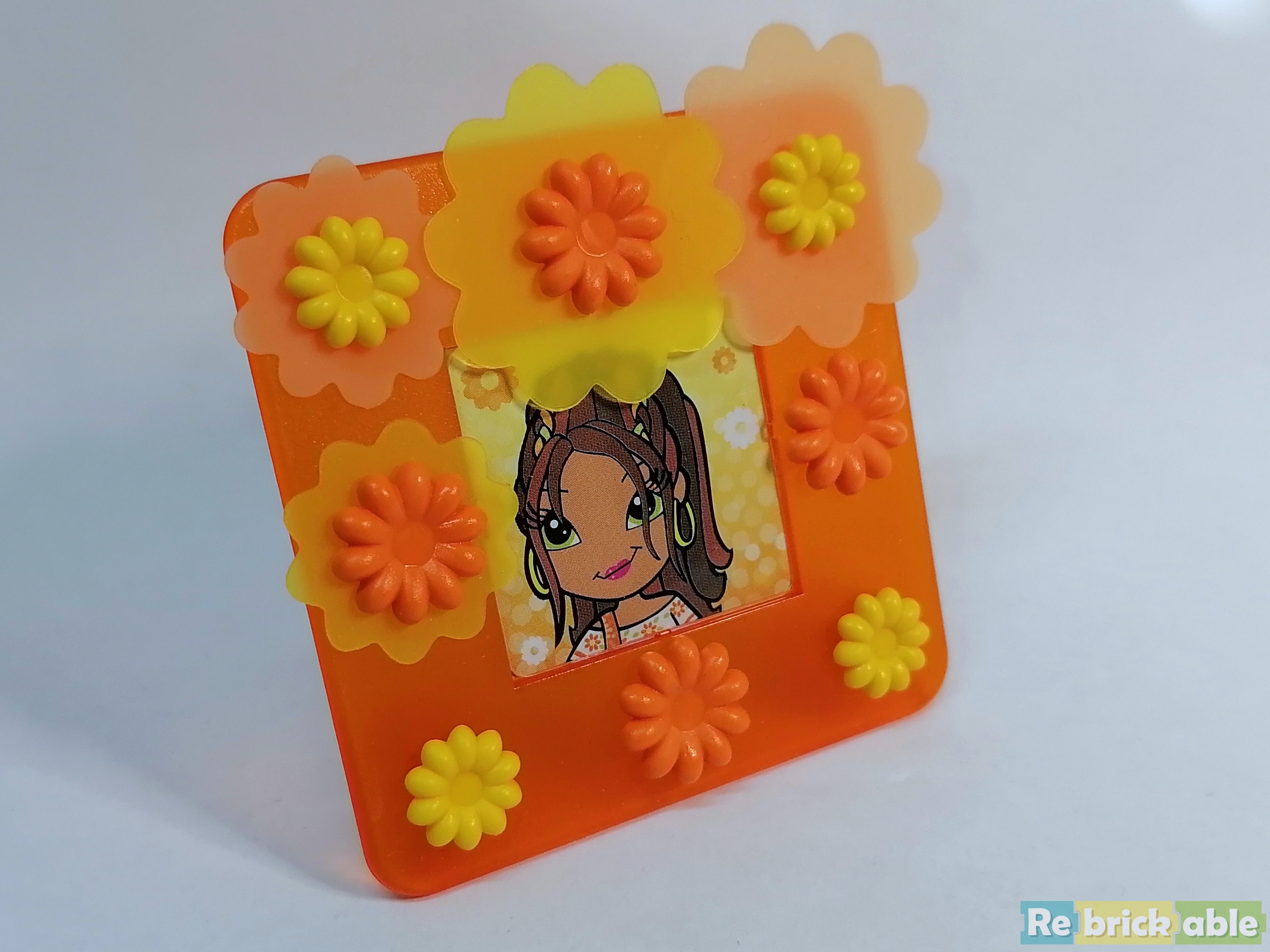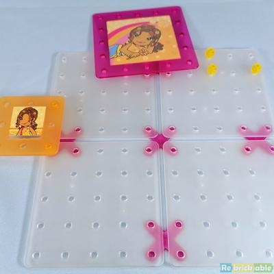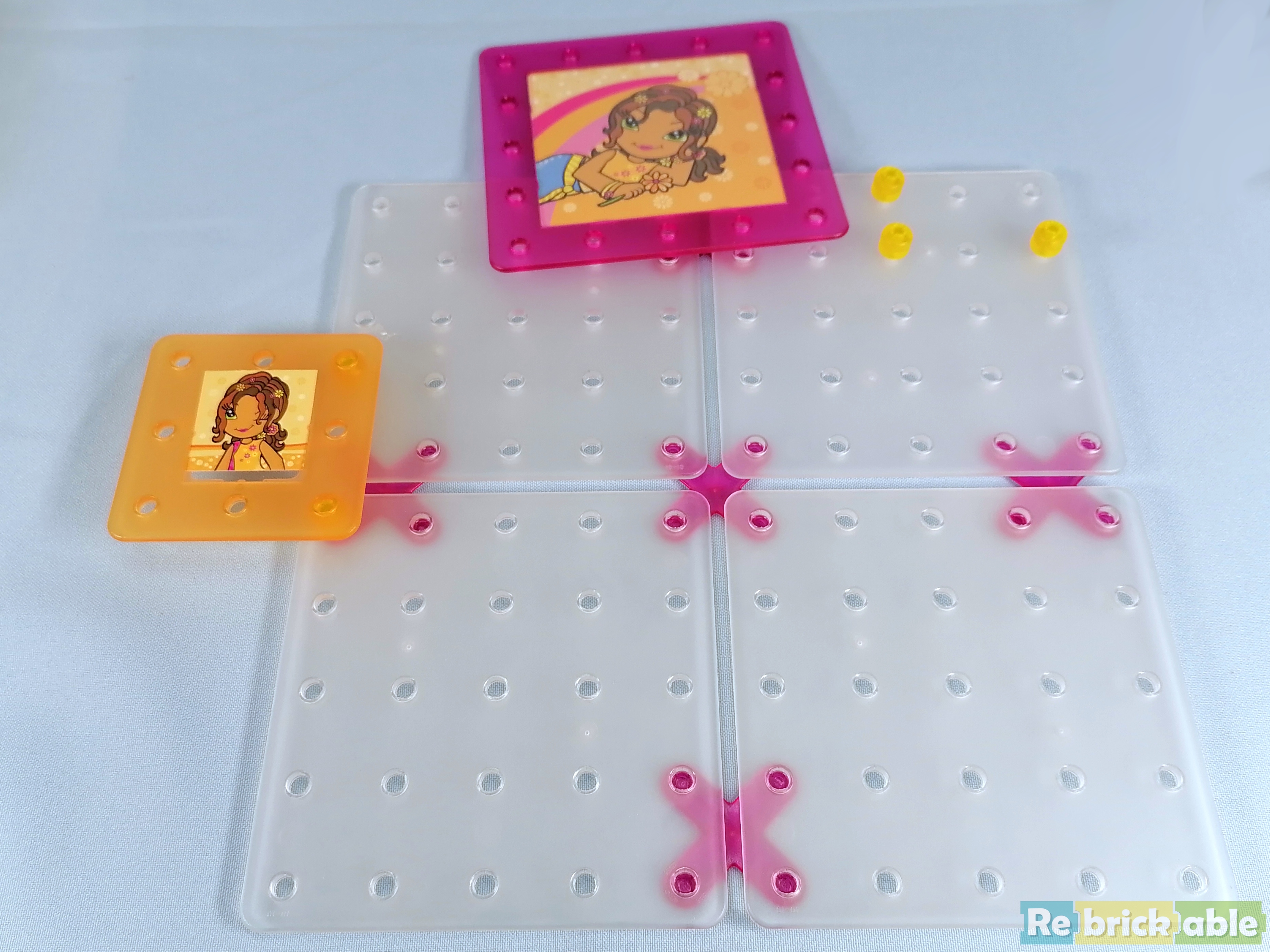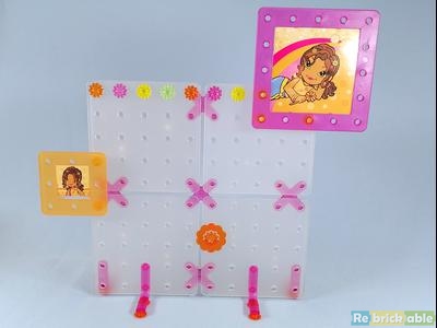 The set comes with something you can call instructions, so to examin the other new parts I'll build the ''official' ' model. The Trans-Dark Pink connectors can couple multiple plates in a flat surface. Using the double beads we can connect the photo frames.