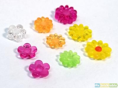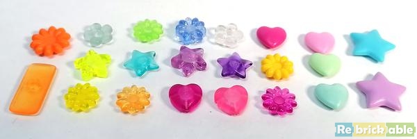 I''ll start with the decorative pieces. These are known as Icons, and come in many shapes, sizes, colors and prints. There are flowers, hearts, round Icons, square Icons and wider Icons to be found in my lot. Looking through the database, there are even more shapes such as sea shells, butterflies etc. Most shapes come in 2 sizes: small and large. Some also come with either a shiny or frosted finish.