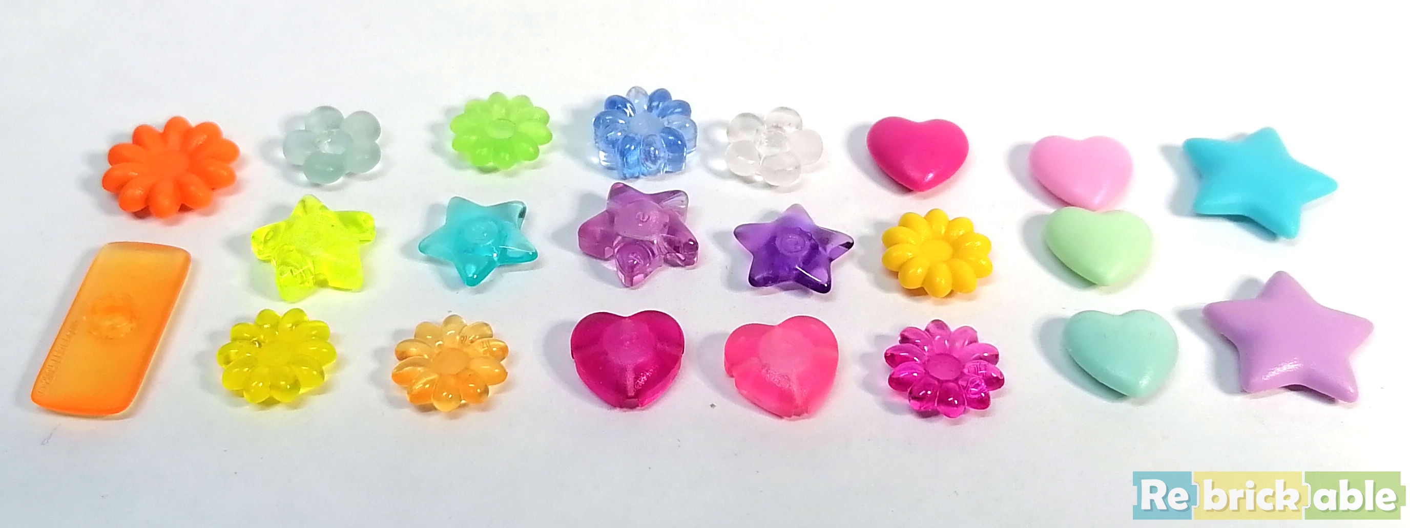 From the looks of it, most sets consist of some sort of decorative pieces that can be put on various objects like photo frames, storage containers, bracelets, rings, pouches etc. I''ve bought a bulk lot on the Dutch eBay to take a closer look at the parts. I must give a big shoutout to Jared: in the past year, he completed our database with all parts and sets, and brought order in a very alien group of parts that would otherwise be impossible to navigate.