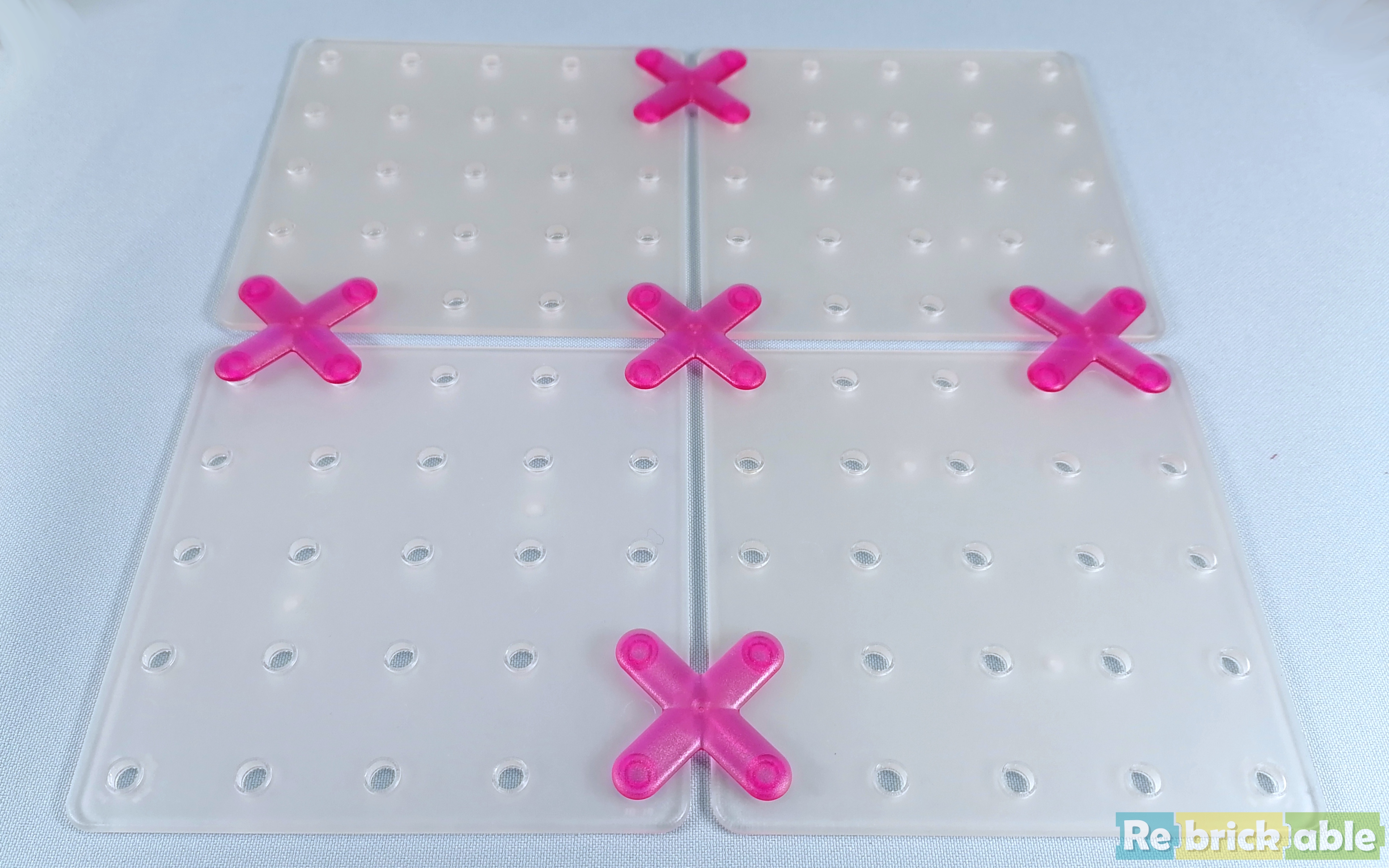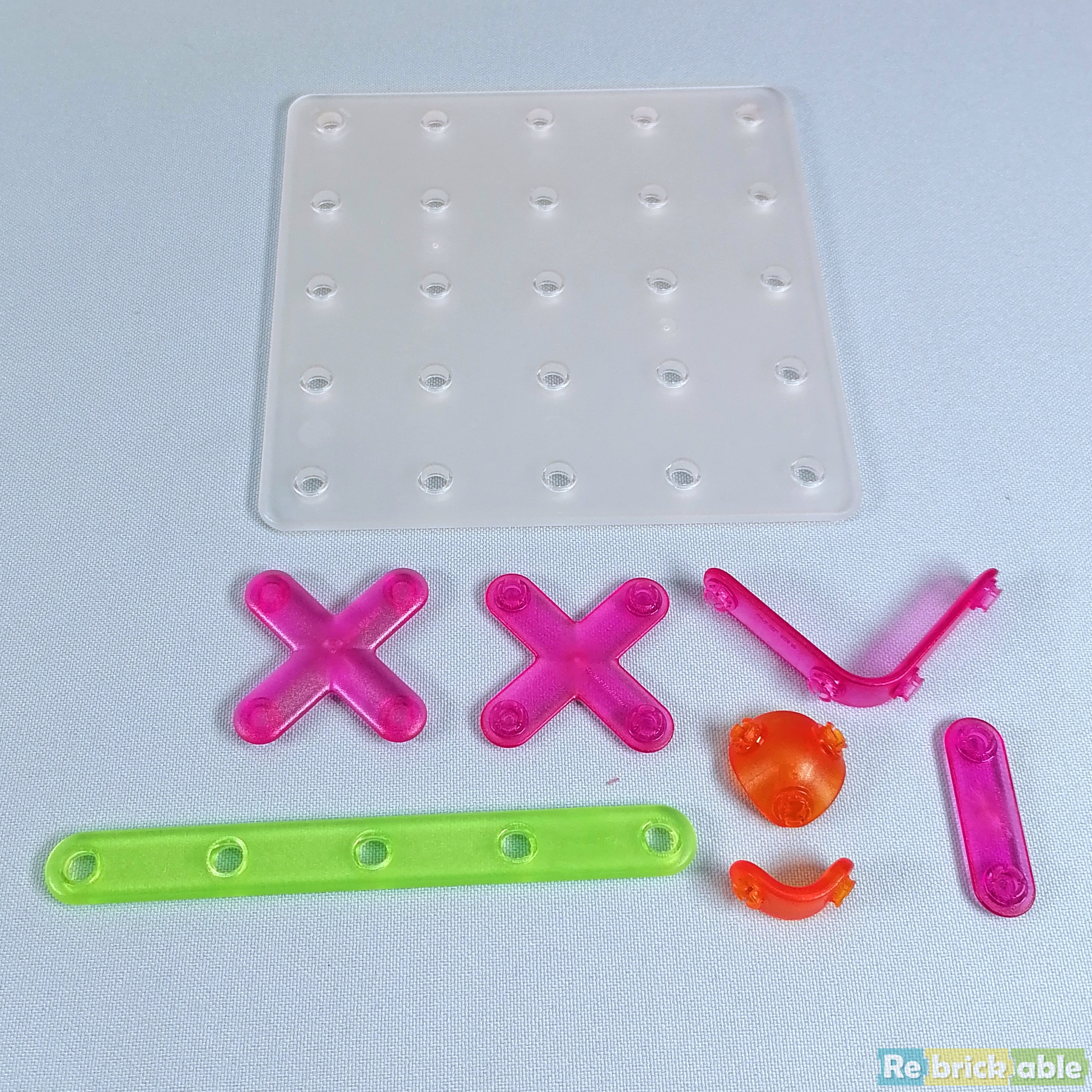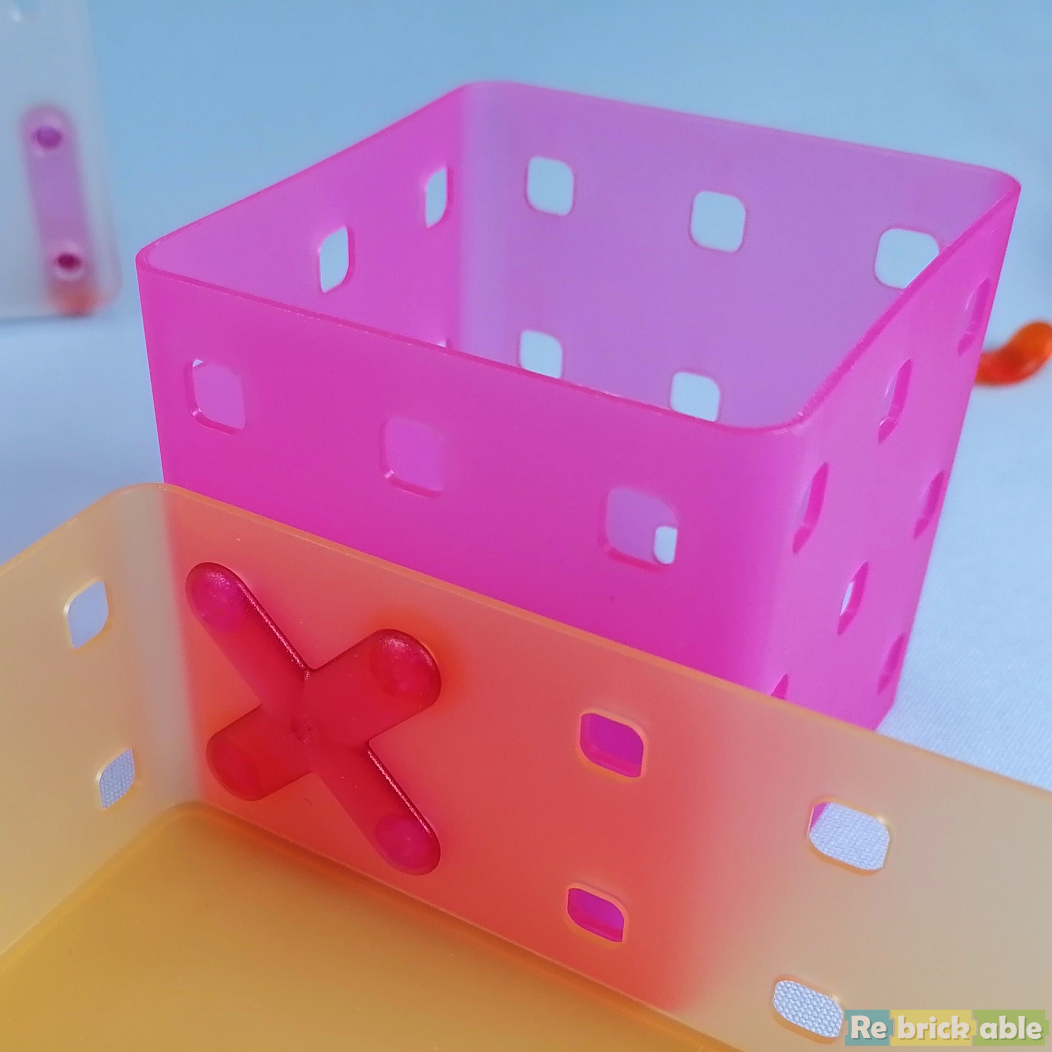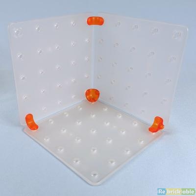 The Trans-Orange pieces come in 2-way and 3-way versions, linking the large plates together and allow for a 3D model.