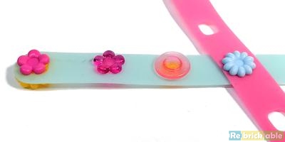 The objects that are made out of rubber, and some of the strips, feature larger holes. This means you can't directly attach an Icon to them. There are 2 options: Use an Icon with Hole and an Icon with Pin, like on the strings, or use a Thin Bead Ring or Thick Bead Ring on the backside.