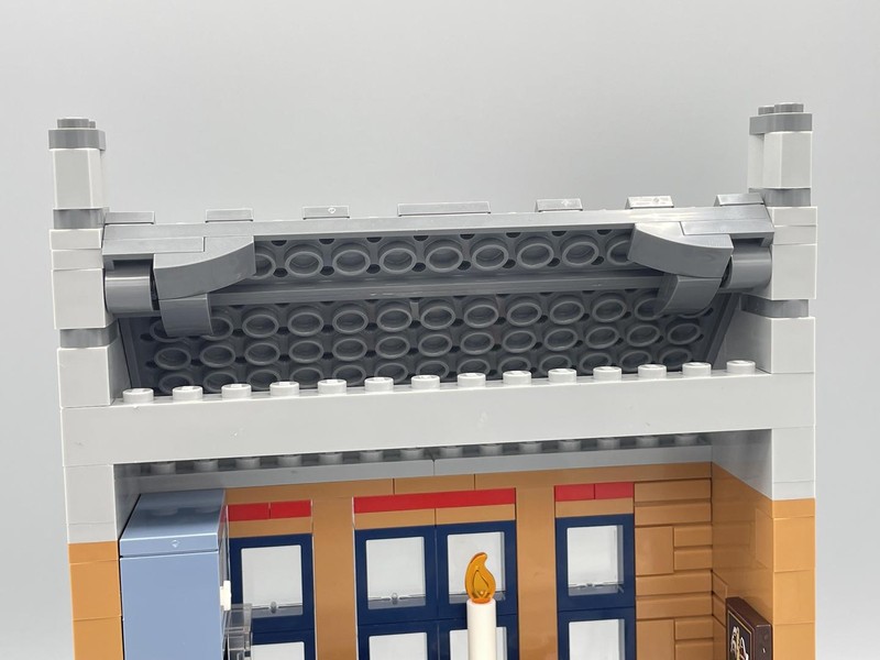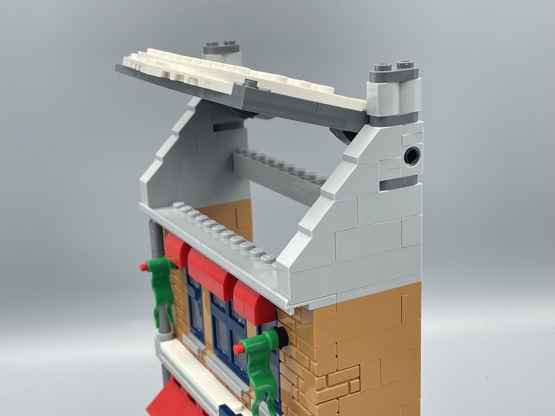 The roof here look good from the front but from the back looks unfinished. Where other Winter Village sets have tried to utilize every spare gap here they decided all that space at the top is ok to be left like that. Very disappointing.
