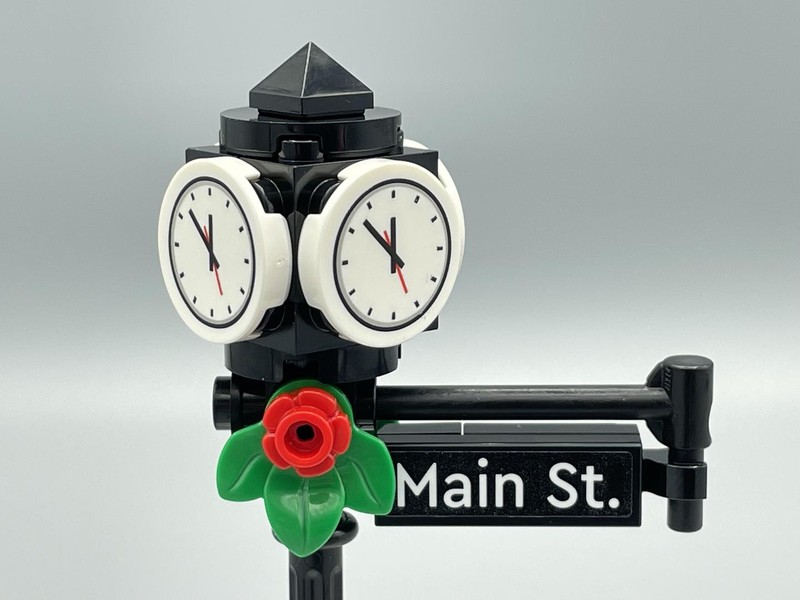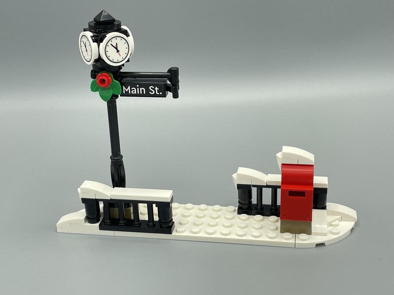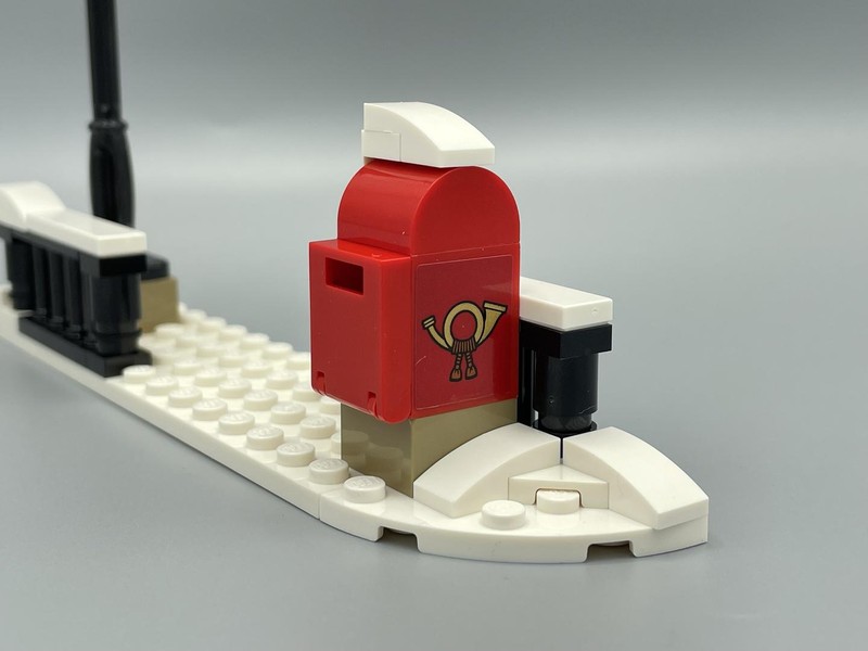 In contrast to the great tree, the snowy street scene is very poor. I like the consistent use of the mail logo (a victorian-esq version of LEGO's commonly used logo) from fellow Winter Village set 10222-1 - Winter Village Post Office. But I think the street sign with clock is just poor. And generally speaking for a set called Holiday Main Street the actual street furnishings should have been more interesting. However I do want to say a big thank you to the designers for avoiding the instinct to include a bench. My Winter Village has more benches than it has residents.