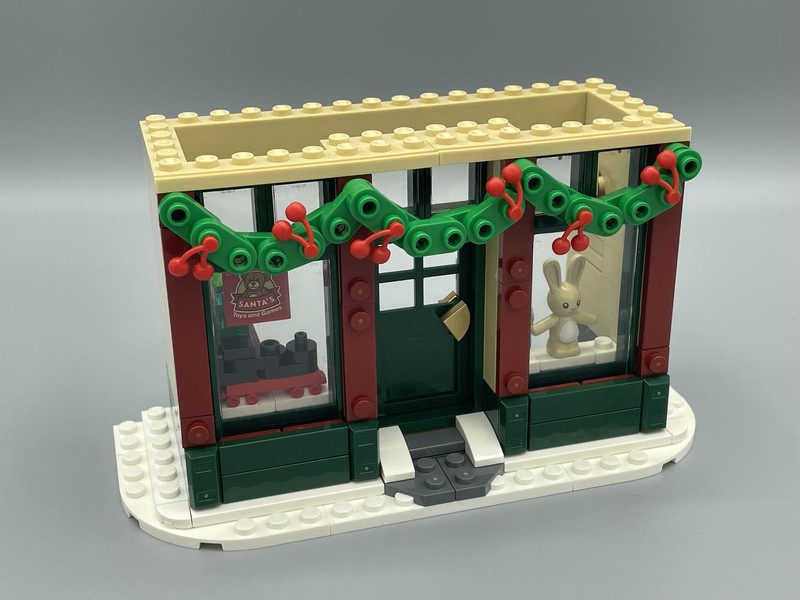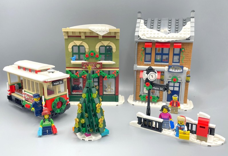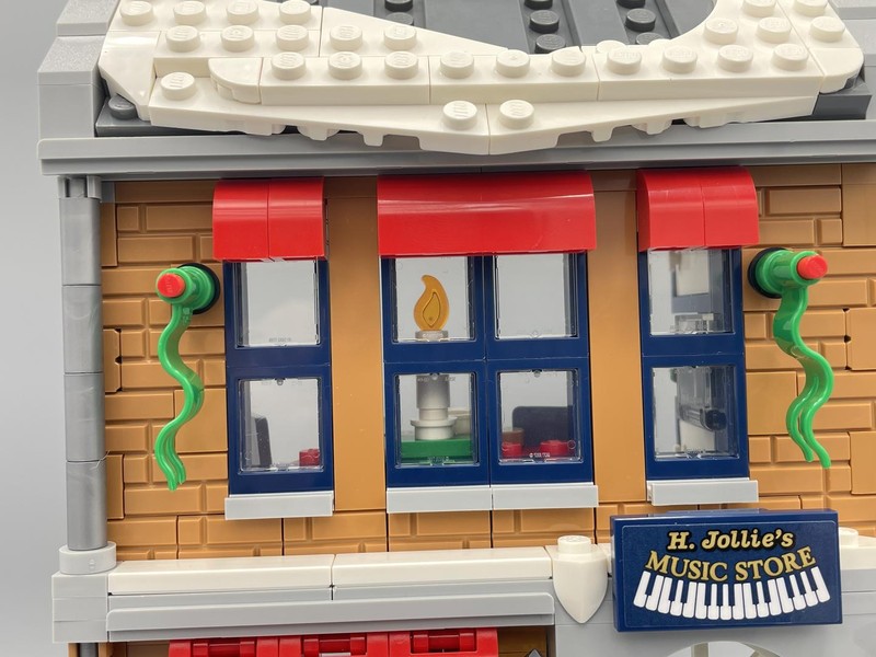 Spreading Christmas spirit Explore all the details of the toy store and music store. There are gifts in each, plus a detailed apartment above each one where the store owner can rest after a busy day. Extra details include the streetcar stop, plus a child who is mailing a letter to Santa. 4 building booklets are included so the family can enjoy building together.