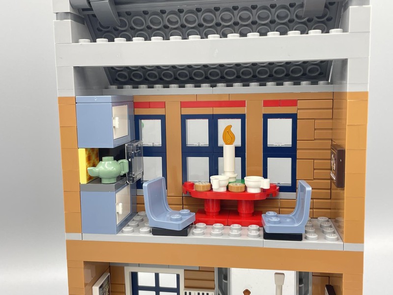 The music shop whilst having a nice exterior is really lacking in the interior. The building is just way too shallow so there's really not any room to do anything particularly interesting. It's very reminiscent of City sets which is not a good thing. The exterior is good enough for some additional backdrop for you village, with festive details and some of the best snow-work I've seen on a roof. But on the whole this model is not worthy of being the center of attention in any holiday display.