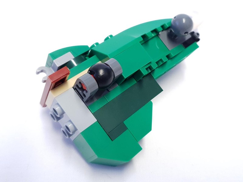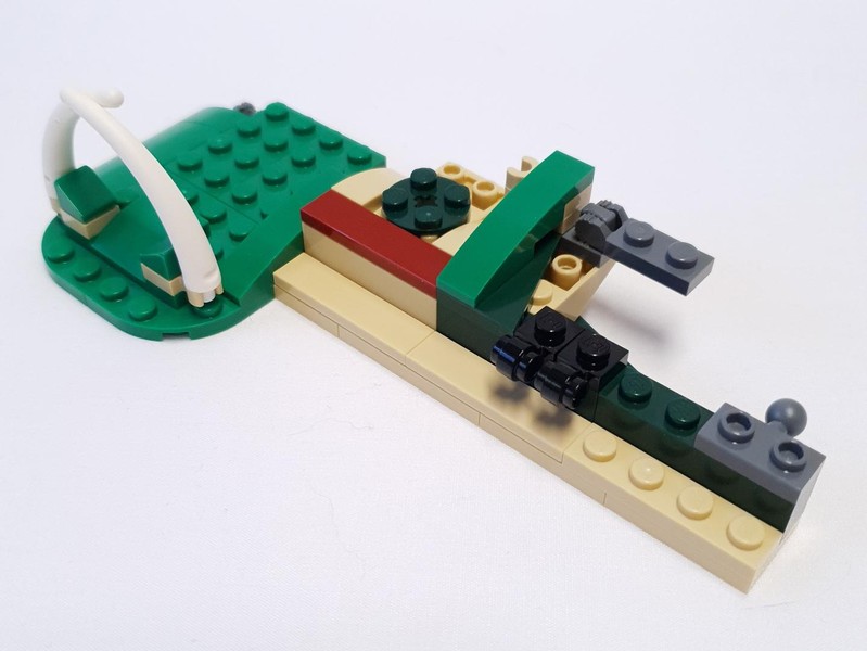 The side panels are connected with only a couple of studs, so avoid grabbing here when picking up the MOC. Add on the tail and we are done. The tail has a flap on the top which isn't connected to the body, but does help to smooth out the shape. Unfortunately the point connecting this flap to the tail is a bit weak, so it is easy to bump off.