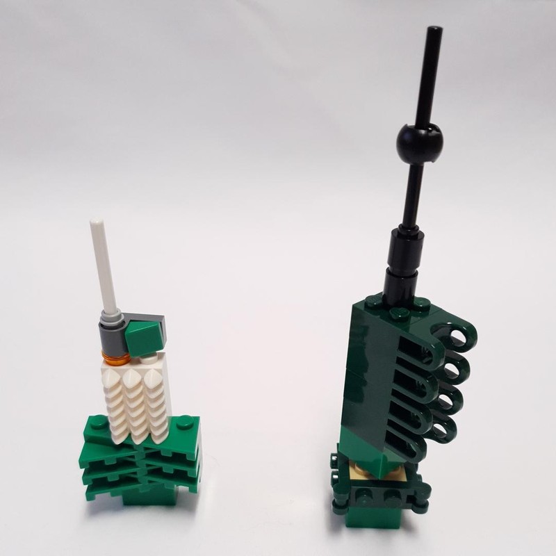 When admiring the centaur, I thought it would look good holding a weapon, so I managed to construct a longbow from the remaining pieces. I swapped out one hand with a black clip so the clip would be in the right direction, and the black part could be considered as the arm guard that many archers wear. I was not able to construct decent looking quiver or arrows. EDIT: After looking at the fan images for this MOC, it turns out I am not the first user to give this centaur a longbow! The other attempt was even able to inclue an arrow by swapping out the white rod in the torso with a shorter black one. I unfortunately broke this up before I could give it a go myself.