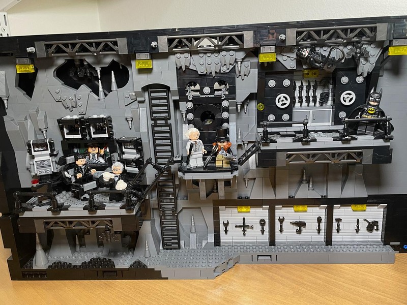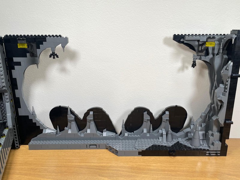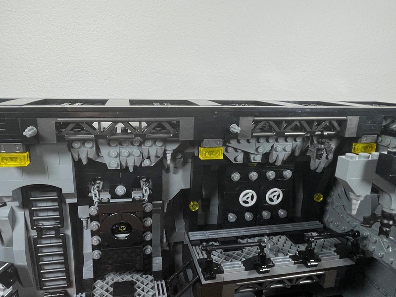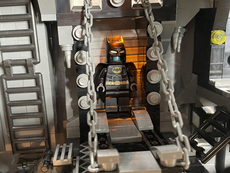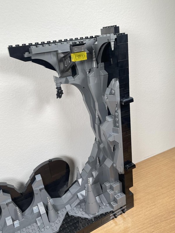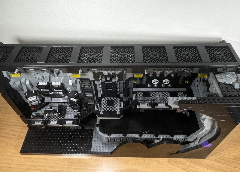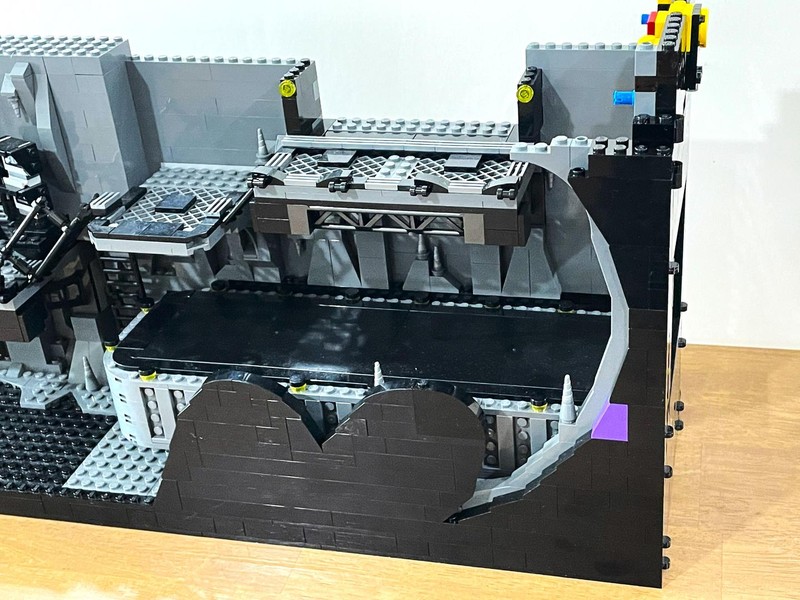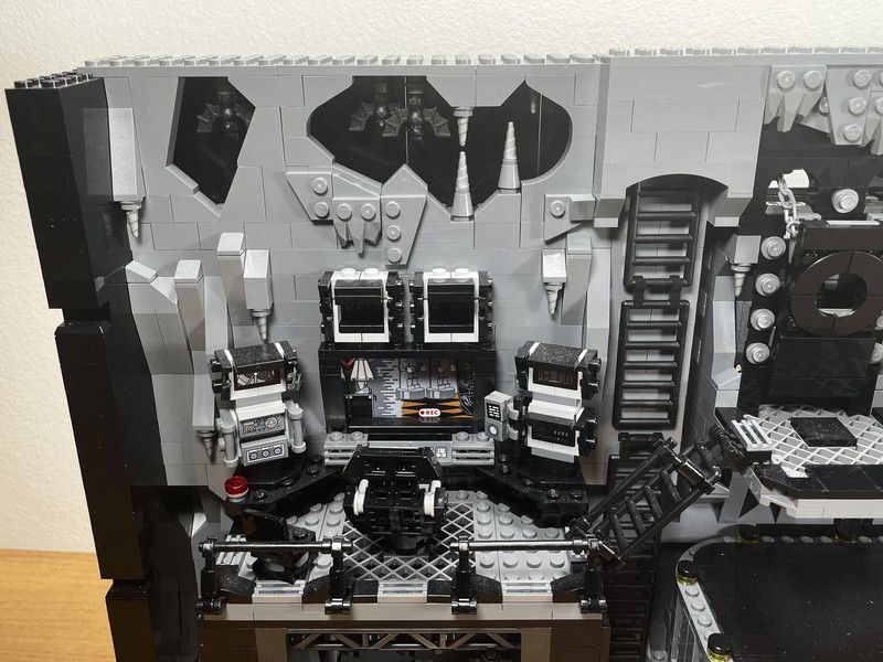 Here's where the build starts to feel a bit anti-climactic. The only thing left to do it build up the walls. They have added depth utilizing the LBG and Black layers to make it feel like some crevices could go on for miles. The entire roofline is propped up with supports and 'lights'. I often wonder who did all this insane engineering for Bruce Wayne and how did he silence them?