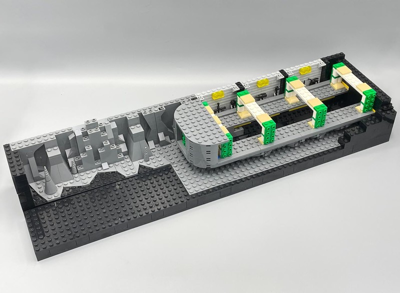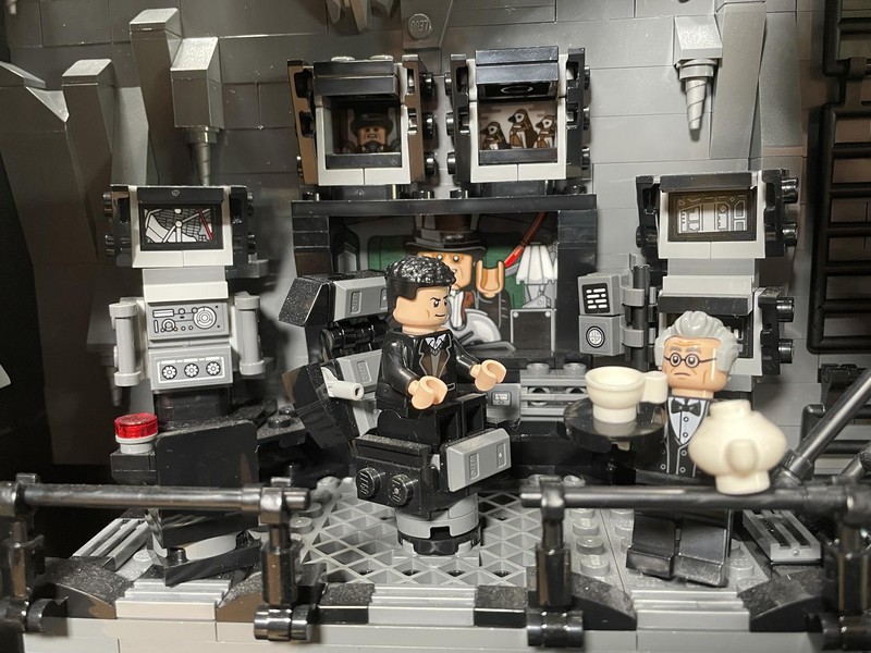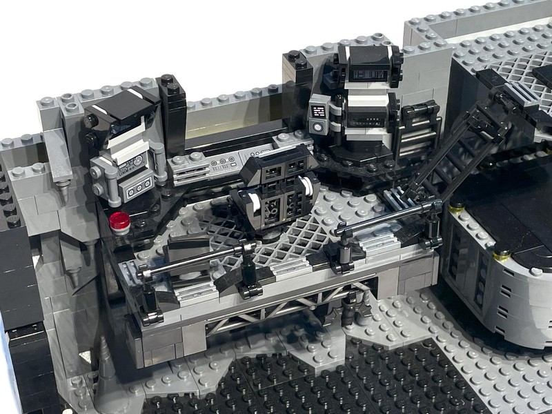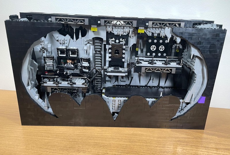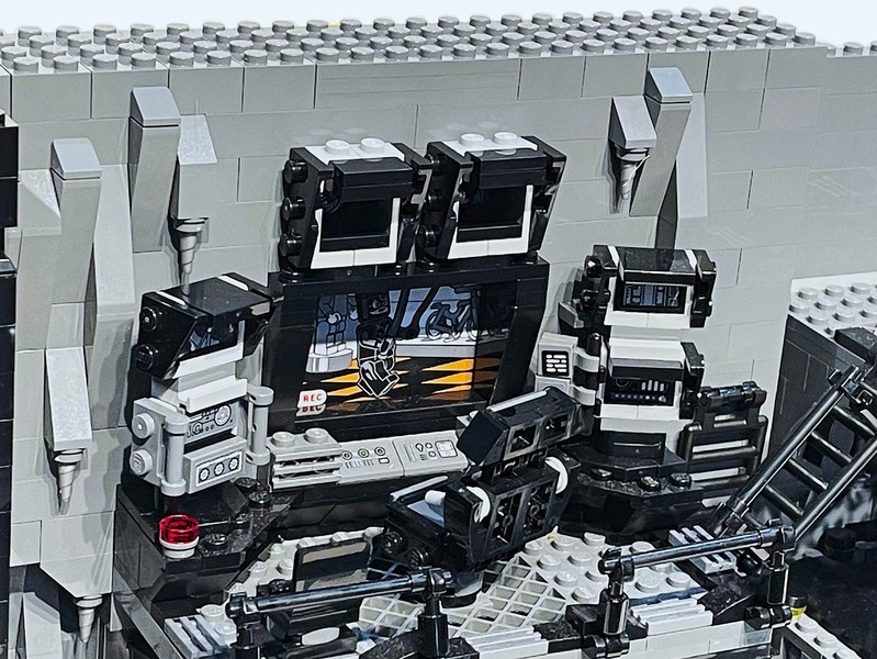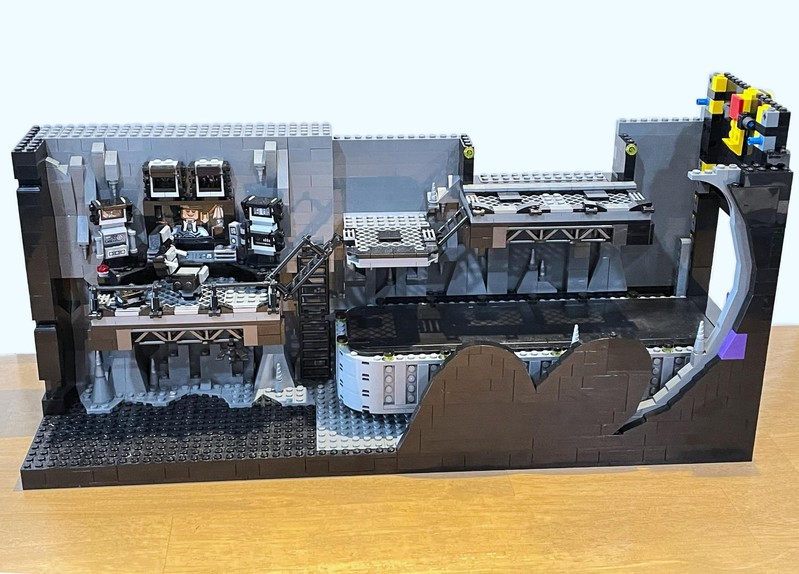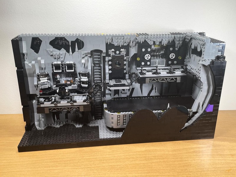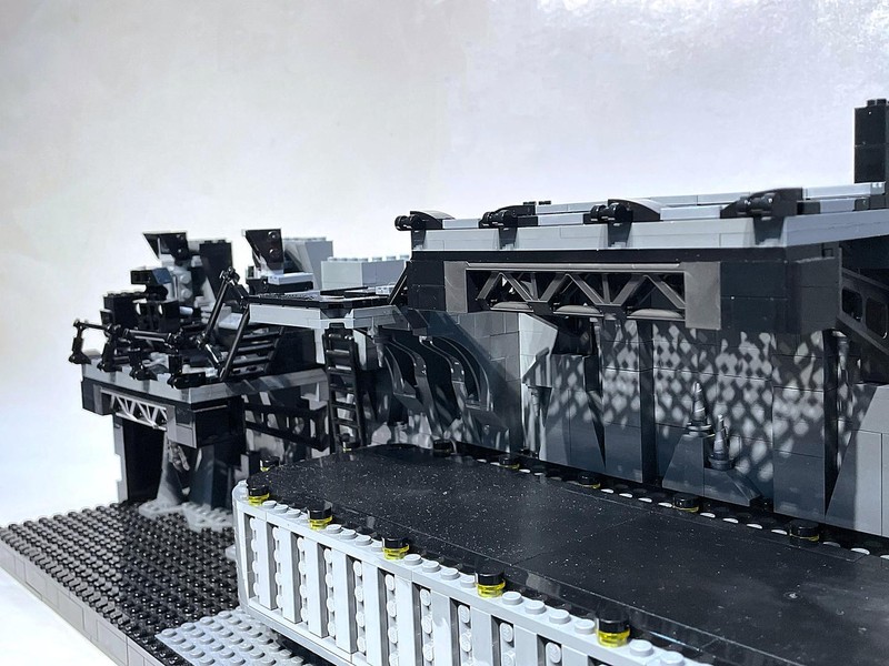 Here's where the build starts to feel a bit anti-climactic. The only thing left to do it build up the walls. They have added depth utilizing the LBG and Black layers to make it feel like some crevices could go on for miles. The entire roofline is propped up with supports and 'lights'. I often wonder who did all this insane engineering for Bruce Wayne and how did he silence them?