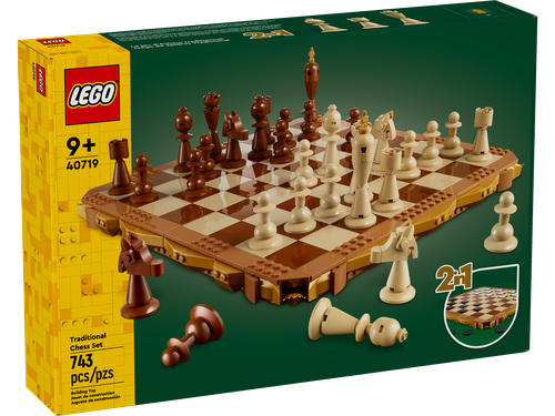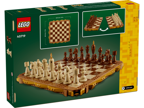 With the game''s popularity, it''s no surprise LEGO has released a couple of their own versions. And that seems logical; the game features 6 different ''characters'', which is a perfect setting for a themed group of minifigures, and we''ve seen chess boards with Pirates, Castle and even Vikings. The most recent version comes from Harry Potter, reviewed by Jared here. That last one shows a bit more standard board with regular pieces, similar to 40174-1 from 2017. What is missing though is the version I''ve used to learn the game, and probably the most familiar version to most people: the 2-colored wooden version. Until today, with the introduction of 40719-1 Traditional Chess Set. I haven''t played in years, so it is the right occasion to test this latest addition.