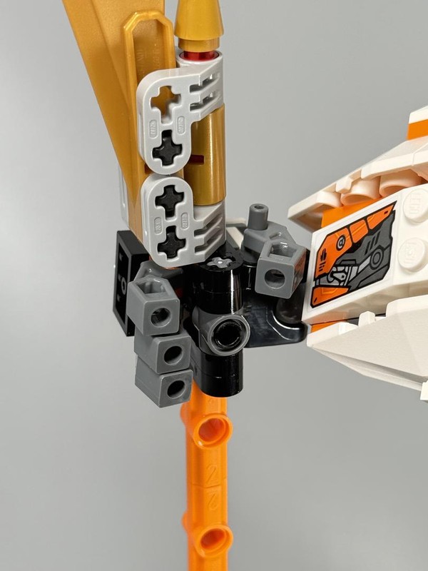 On to the arms, Coles titan mech is channeling some awesome 80's shoulder pads. Honestly I think this is a bit flamboyant. Unless they were needed for balance I think they're a bit oversized. Again, the articulation here is incredible. However also like the legs this articulation seems to have been at the expensive of any particularly interesting bodywork. Both hands have a Technic Pin connection for the sword (built in bag 11).