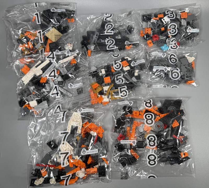 The first 3 bags builds the torso. What is usually a solid block, designed to take all the stresses of the limbs, here it feels a bit less solid. There's lots of different connection points in all sorts of directions, teasing what is to come. The odd angle in the torso suggests it'll have an odd pose where it's sticking out it's butt, add to that a large protruding chest you can't help but think this could end up looking really weird.