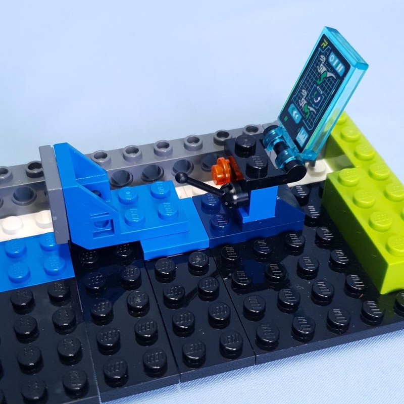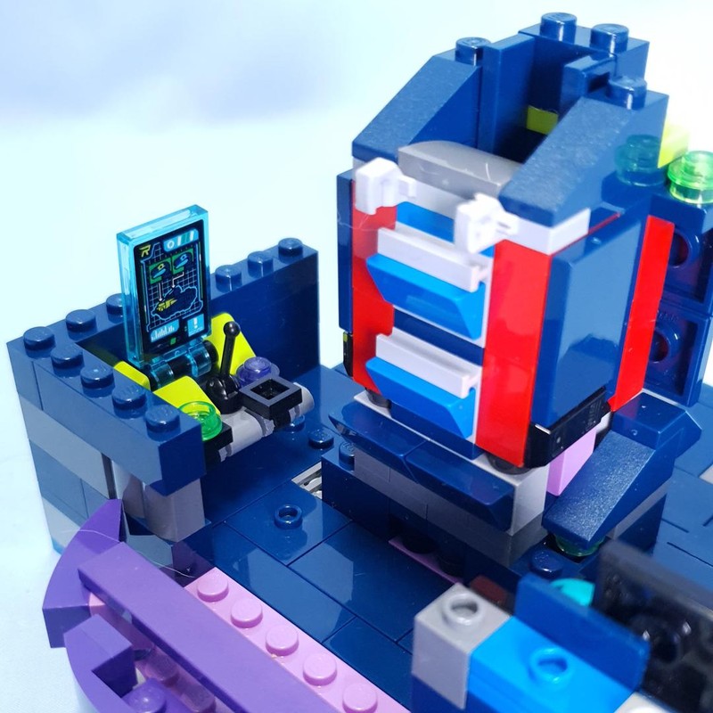 In the corner is our first arcade machine which is your typical joystick, buttons and a screen. It is a good looking minifig scale arcade machine.