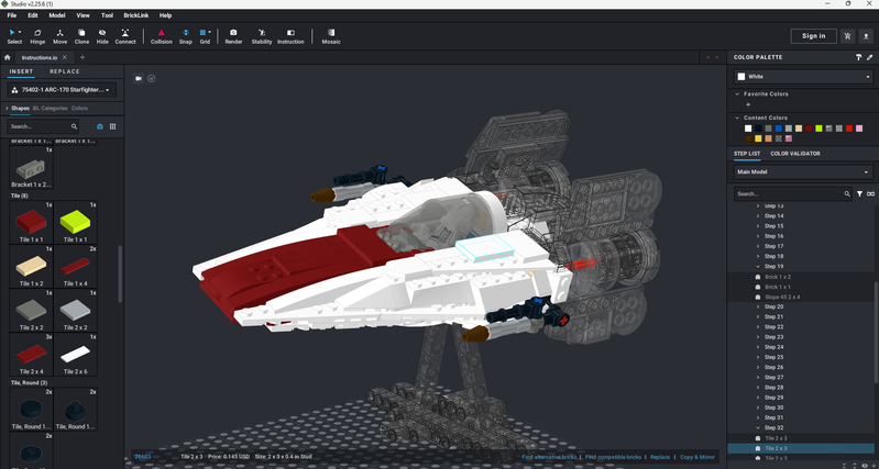 I use BrickLink Studio for my digital models and instructions. When I started in 2021, it was overwhelming—even with experience of using programs like ArchiCAD and AutoCAD Revit. But after a few tutorials and a lot of hands-on practice, I forced myself to learn it so I could create instructions properly.
