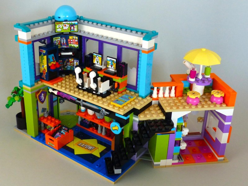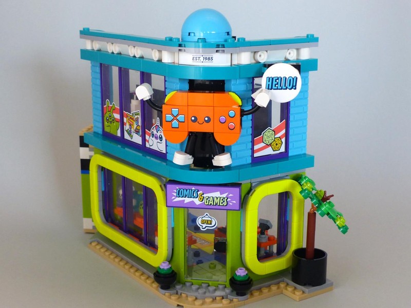 The finished set has the typical colorful and vibrant Friends look, which is quite fitting for this kind of store. The angled setting of the stores is a nice touch. I like that the stairs are angled too, because that's a really clever and space-saving way. Since it's a 9+ set, there aren't any intriguing or complicated building techniques, and many details are realized with stickers. Nevertheless, I had a great time building this one because of the many details with references to various things like Lego sets and D&D. Especially, I love the details that refer to things in the set itself, like the little alien figure that also appears on 4 of the 8 comic books and one window. Like I already said, this set reminds me of the great TV series The Big Bang Theory and therefore has some nostalgia for me. The costumes are a cool addition to this set because they are a big part of comic book and game fan culture and also gave Lego a chance to include some new or uncommon Minifigure parts.
