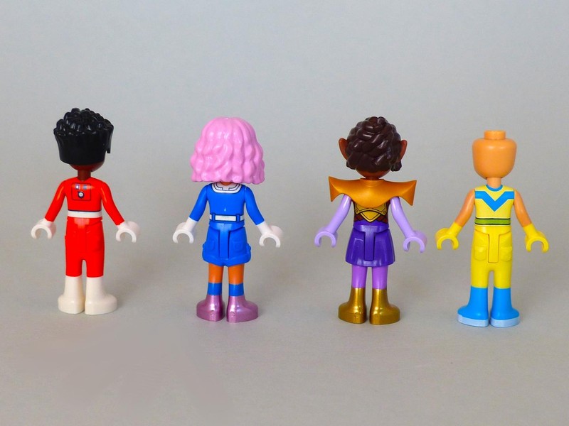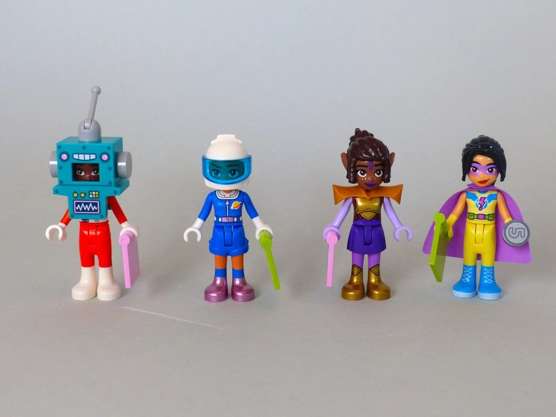 All the Minidolls have new prints on their torsos and legs as well as new face prints for Aliya and Liann matching their costumes. Aliya's hairpiece is the one from the D&D-set 21348 and Zac's robot helmet is the one from CMF 23 with a new print. So two very rare parts appear the second time in this set. Liann and Nova even have new parts (cape and helmet).