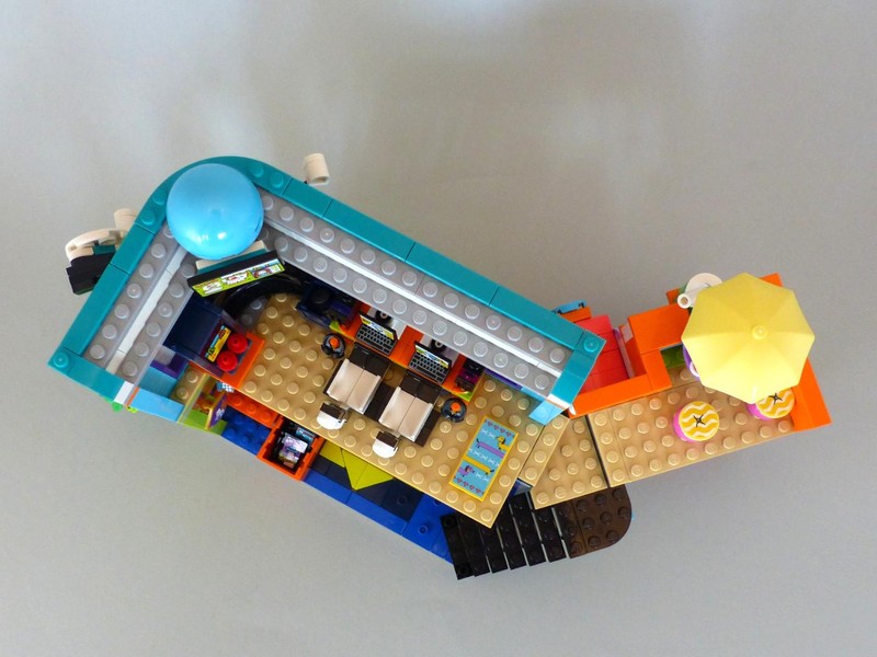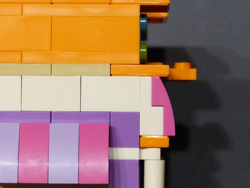 The Slushy shop is mostly built by stacking bricks and plates but uses a little bit of SNOT-techniques to decorate the front smoothly. This shows some great precision in positioning parts (in a 9+ set!) using Lego geometry and therefore helps younger builders to improve their building skills.