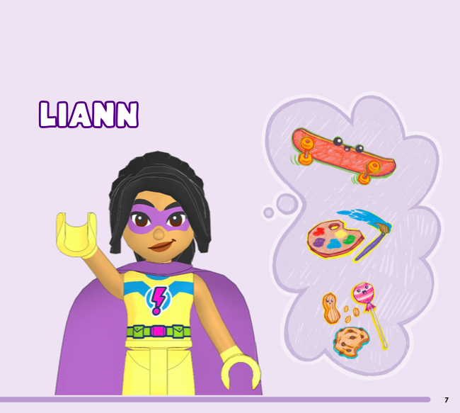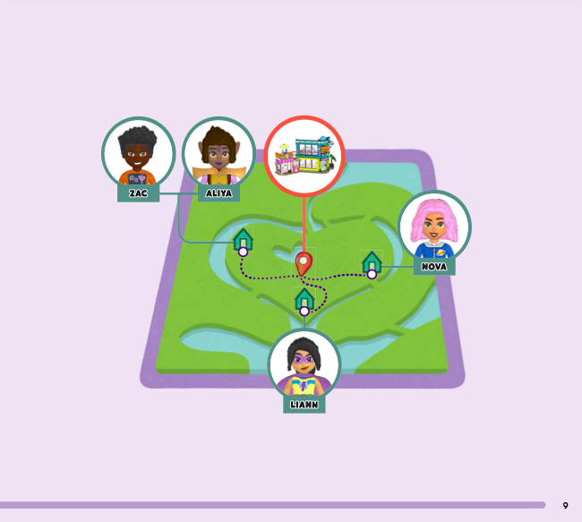 Kids can act out lots of adventures for friends Zac, Nova, Liann and Aliya, who are wearing their fun robot, superhero, galactic explorer and knight costumes. Discover the store’s plushies and the toy vending machine, which dispenses cute little LEGO tiles. Upstairs there’s space where the characters can play computer games before grabbing a treat from the slush ice store next door.