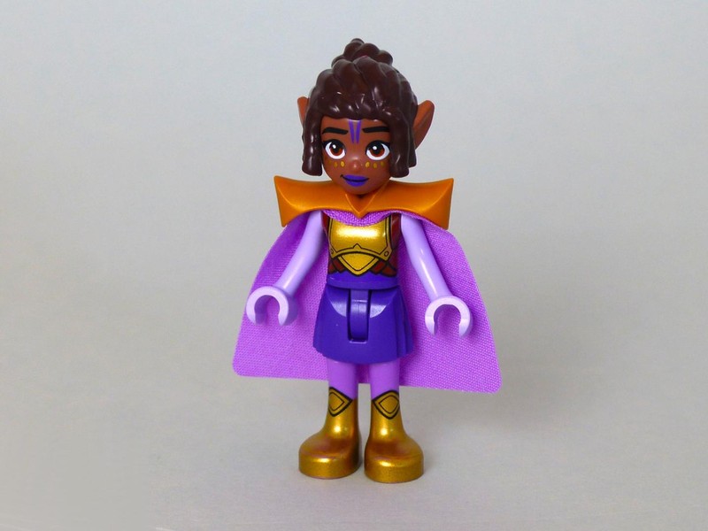 By far, Aliya is my favorite Minidoll of this set. The golden prints and face markings are wonderful. The shoulder armor and color palette fit very well with Liann's cape. Of course, the new shield with the new faction (maybe the Pegasi?) is a must-have for her costume. The shape is the same as Link's shield from the Great Deku Tree set. The Minidoll reminds me a bit of the Elves-theme.