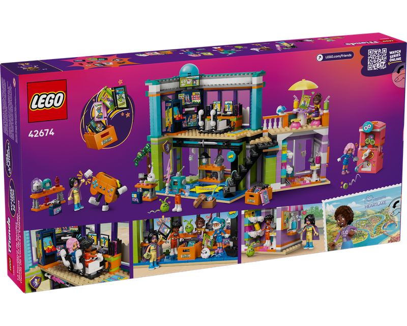 A building set for young heroes – This Comic Book \u0026 Game Store for girls and boys aged 9 and up comes with 4 minidolls, alien and unicorn plushie-style LEGO® pieces and accessories Includes 4 minidolls – The characters come with special comic-book-inspired costumes, including a robot, superhero, galactic explorer and a knight, plus accessories to fuel creative play Toy vending machine – The set is packed with features, like the toy vending machine that dispenses cute little toy tiles, an arcade machine, a gaming area, retro-themed décor and a slush ice store Heaps of accessories – Includes lots of role-play inspiration, such as comic books, costume helmets, game controllers and headsets, slushies, a store mascot, TV screen, a trash can and more A gift for kids – This fun toy makes a great gift for kids who love superhero stories, comic books or building sets that they can play with while creating their own adventures Online show – Inspire more creative-play ideas with other sets (sold separately) and the LEGO® Friends: The Next Chapter online show, where kids can get to know the characters of Heartlake City A helping hand – Discover intuitive instructions in the LEGO® Builder app, where builders can zoom in and rotate models in 3D, track their progress and save sets as they develop new skills Measurements – 1,005-piece set with a main model measuring over 7 in. (18 cm) high, 11.5 in. (30 cm) wide and 7 in. (17 cm) deep