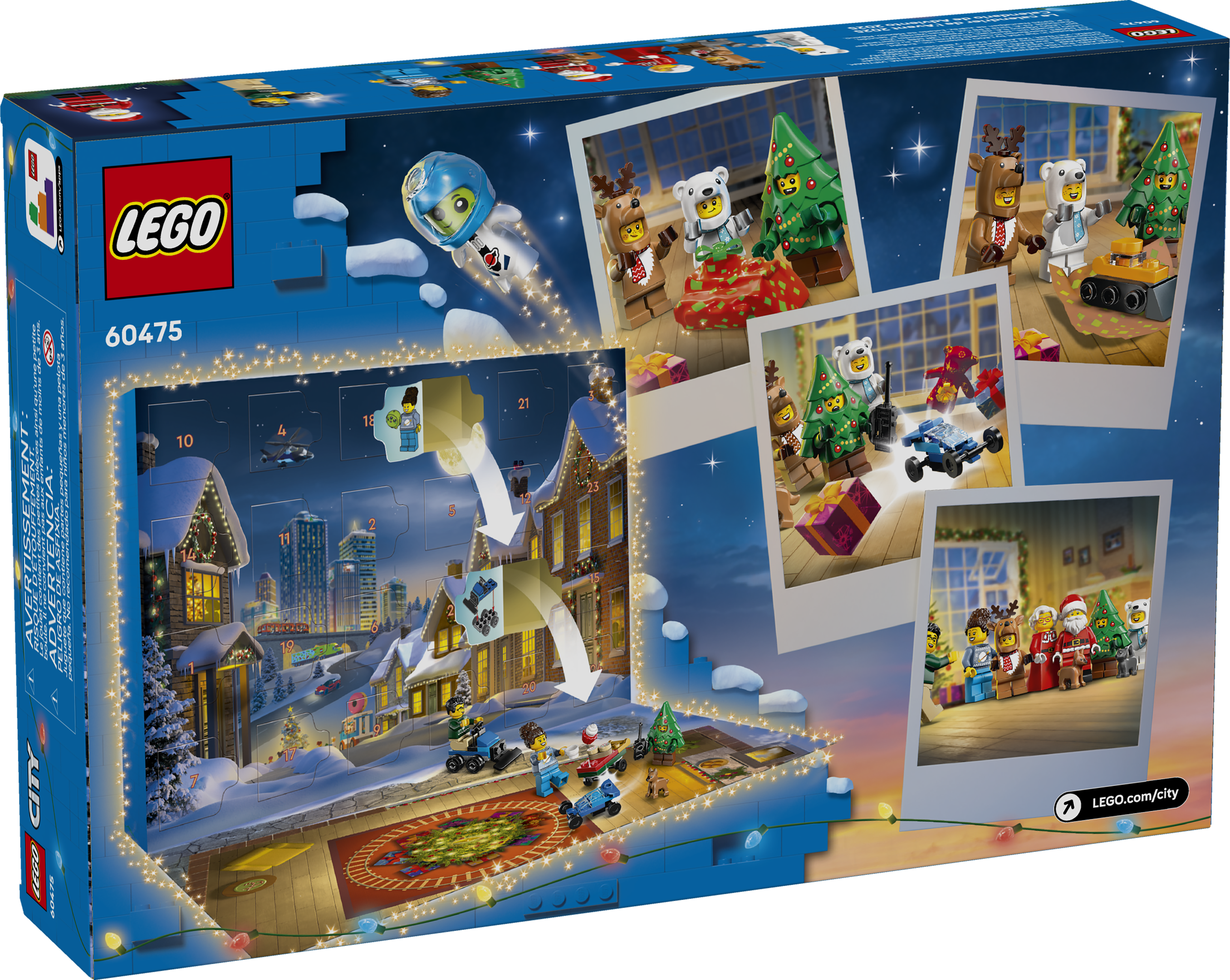 Start the holiday countdown with the LEGO® City Advent Calendar 2025 (60475) for kids aged 5 and up. This year’s calendar is bursting with festive fun, including characters dressed in polar bear, reindeer and holiday tree costumes, plus accessories and toy mini builds. Fold out the playmat to reveal a Christmas party scene – the perfect backdrop for seasonal stories and imaginative adventures. This LEGO Advent calendar makes a great pre-Christmas gift for young builders. Every mini surprise comes with simple, easy-to-follow building instructions printed on the inside of each calendar window, making it ideal for new builders and little LEGO fans. The LEGO City Advent Calendar 2025 is packed with surprises for kids who love creative play. Kids can also combine the buildable toys, accessories and minifigures included in this calendar with other LEGO City sets (sold separately) for even more holiday fun. From LEGO.com