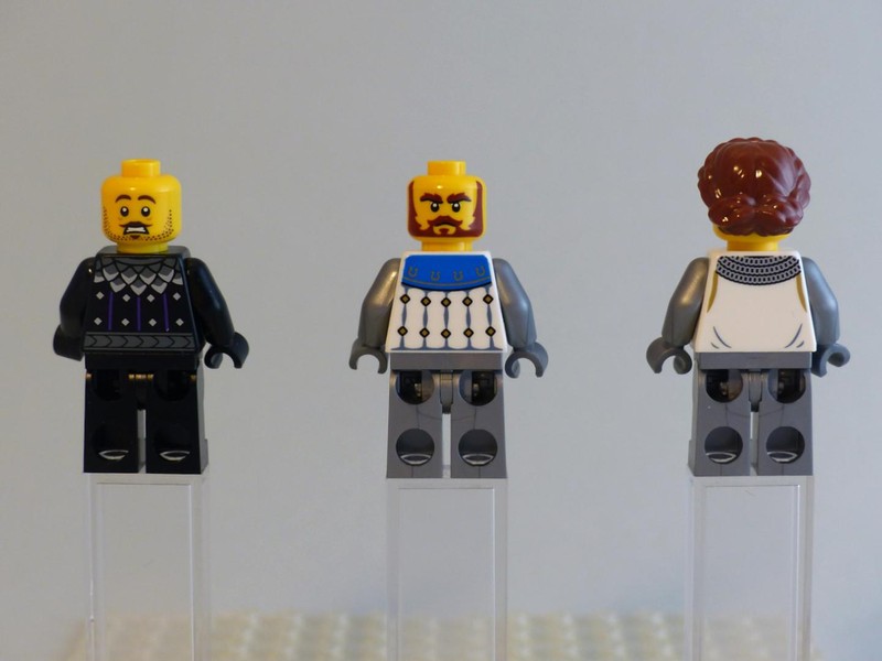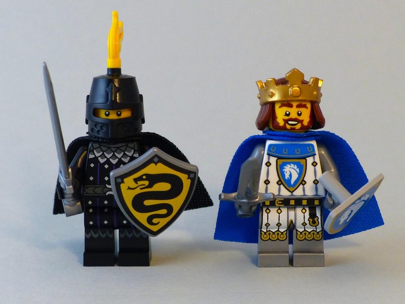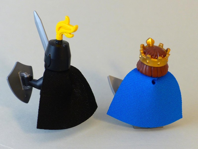 The two main characters have very detailed prints, and I love the crown. But the best touch here is the cloth of the capes. I hope it's visible in the pictures that this is not the standard plain cloth but a thick and coarse one. It falls nicely down the back and feels wonderful between the fingers. While researching the Castle factions I found an interesting link to two older sets that already included a shield with a serpent in a similar shape but different colors. Maybe there is more to this or just a coincidence?