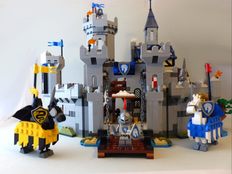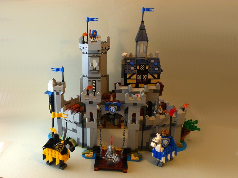 As someone who grew up with Lego castles, I was pretty excited when this new castle was announced, and now after building it I have to say that I like it. It surely is not all perfect with this set, but that's probably an near-impossible standard, though. Especially the main model looks very impressive and quite realistic with the well-placed towers and the uneven angled walls around the courtyard. Also, the village is a convincing model. The tournament scene is ok, but in my eyes, by far the weakest of the three. A big plus are the Minifigs with nice accessories (particularly the capes) and the introduction of two new factions. The models also have some play features that a good castle (and a 9+ set) should have.