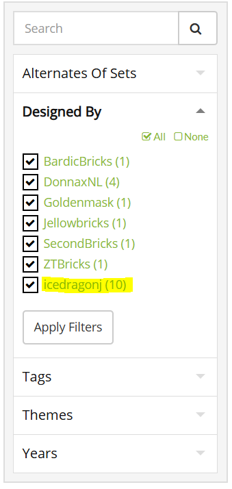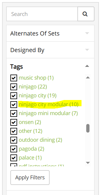 2. Or, go to any of your MOCs and click on the tag you want to view all MOCs with this tag. Use the filters on the side to only show MOCs designed by yourself by clicking the green text with your username.