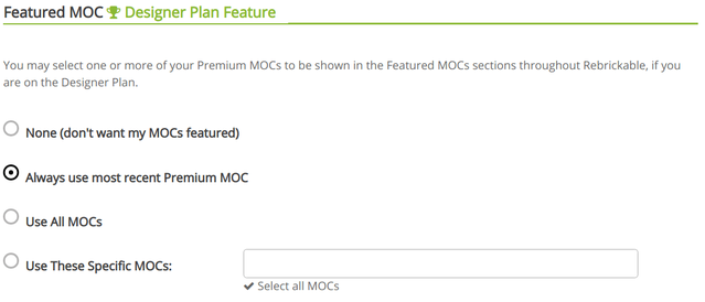 Please note that only MOCs published while you are on the Designer Plan are shared - any previous MOCs before you upgraded will not be included.