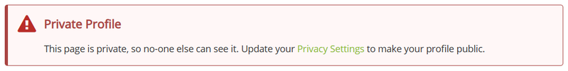 Customising your profile is a great way to draw in more followers and let them know a bit about who you are. When you first sign up for Rebrickable your profile will be private by default. You can make this public by going to > Settings > Privacy. When viewing your profile page it will give the below warning if it is set to private.