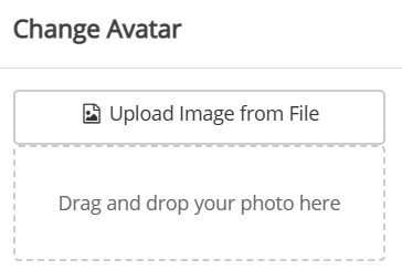 You can also customise your avatar (photo) by clicking Change your avatar underneath your profile picture. You can either upload an image from file or drag and drop an image file directly into the browser. It is advised to use images at least 150 x 150 pixels in size to avoid a blurry image.