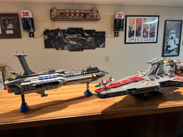 Finished this after a long weekend working on it. Had to sub a few parts and colors to keep cost down from what I didn’t already have in my stash. I modded the legs to make it a bit more sturdy on the shelf. In the middle of the build I decided I didn’t like that the hanger was empty, so added some micro stuff in there. I’ve been ruminating this build ever since I did the Venator a few years ago. I’m incredibly happy with how it turned out, the design (this thing is solid! Especially compared to some other MOCs I’ve done), and the directions were great!!