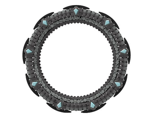 If you prefer the Atlantis version of the gate, the crystals are also available in some glitter blue version at pick a brick. I would have preferred the clear red crystals as you see in the rendering, but they are hard to get on bricklink and quite expensive. If you want to build it cheaper than use non-LEGO pieces they cost way less and work just as fine combined with LEGO pieces. The minifigs of SG1 in the picture are from minifig.me and cost around 50€. If you want some Jaffas as well the old Mummy figures of Anubis and Horus work quite nicely. You could even make really nice Staff weapons if LEGO only made those lifeguard flotation aids in grey.