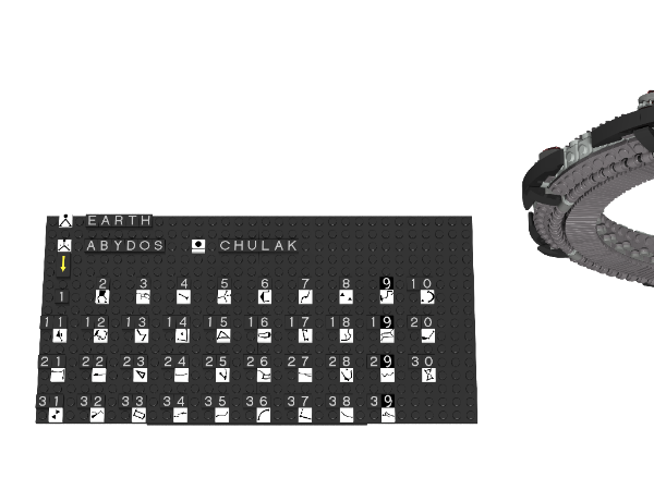 If anybody has a suggestion on how to best print 1x1 tiles with the symbols feel free to leave a comment. I think it’s a good minifig scale version. Even though it’s built with hinges it won’t collapse on it self due to some snod techniques I used. The instructions show a slightly different version of the landscape, as I didn't replicate the plants and baseplate exactly in studio. Also the minifigs are not included in the manual. You will have one manual to build the Stargate and one to build the stand. Don't worry if the connection points in the manual don't fit in all places. I tested it in real life and it works but its a tight fit. That one I wipped together from my brick inventory. The Chevrons are a bit tricky to built because those Technic pieces don’t have enough friction to hold the crystal diamond tightly. That can be helped by wrapping the connector nob of the crystal piece with a bit of tape.