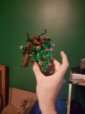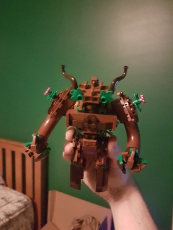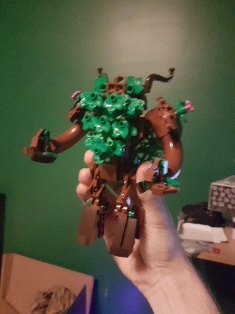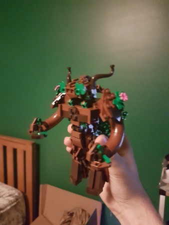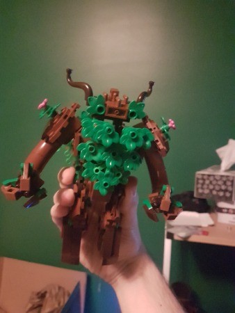 I finished the mech, made the mech opening shut closed and added a head, beard, leaf cape, and more details in order to get this treeant build. It even looks female upon detaching the beard, ig its gender customizable...? The legs are unfortunately incredibly shaky like the original design, but this is what we had to work with using the limited piece count from the bonsai set. For an alternate build using these pieces you still did amazing, I loved to build this.