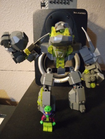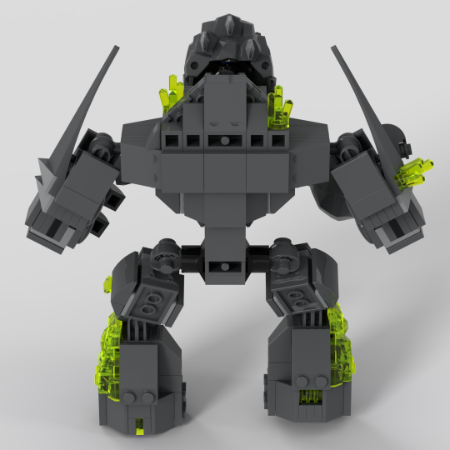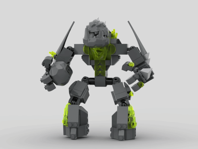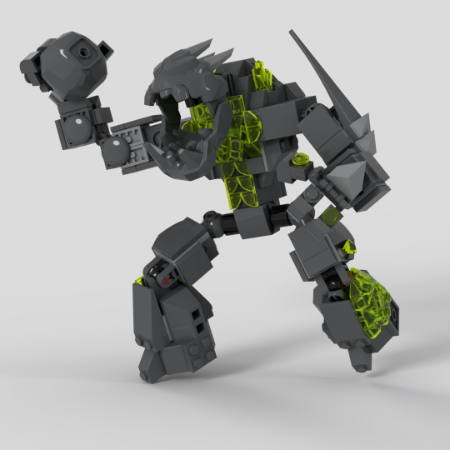 I made him fairly posable, however, I gave him feet like a rock golem would have so he has no ankles. Also, the 4 x 6 plates on the side of his shins totally works in a actual build but Studio doesn't like it.