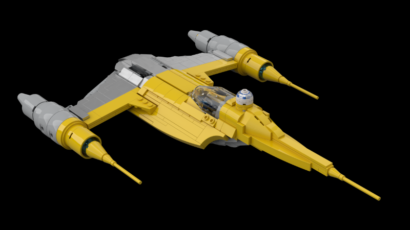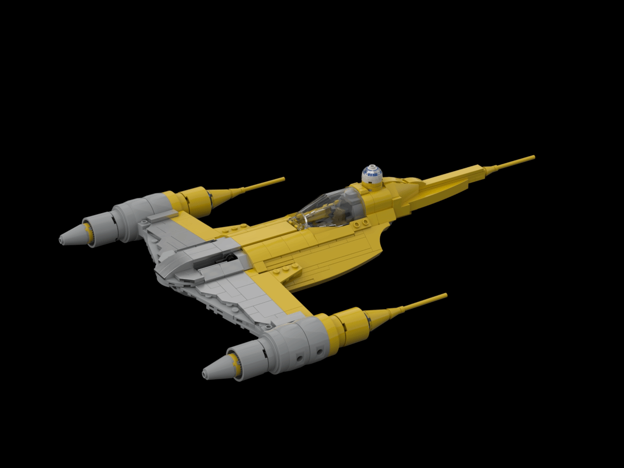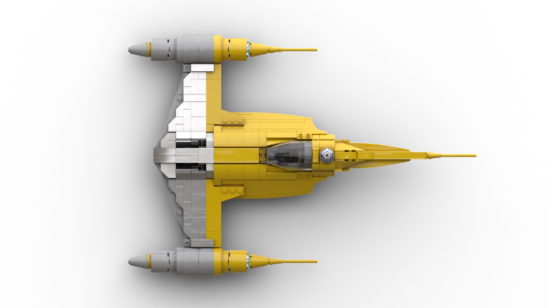 Here's my interpretation of the N1 starfighter as seen in Episode I. It was inspired by Inthert's and 2Bricks Officials versions, go check them out too! I wanted mine to have a longer, more aggressive feel and to me a more accurate scale, as shown in the movie. Also the cockpit features are closer to the real thing (as far as possible in the brick :) ).