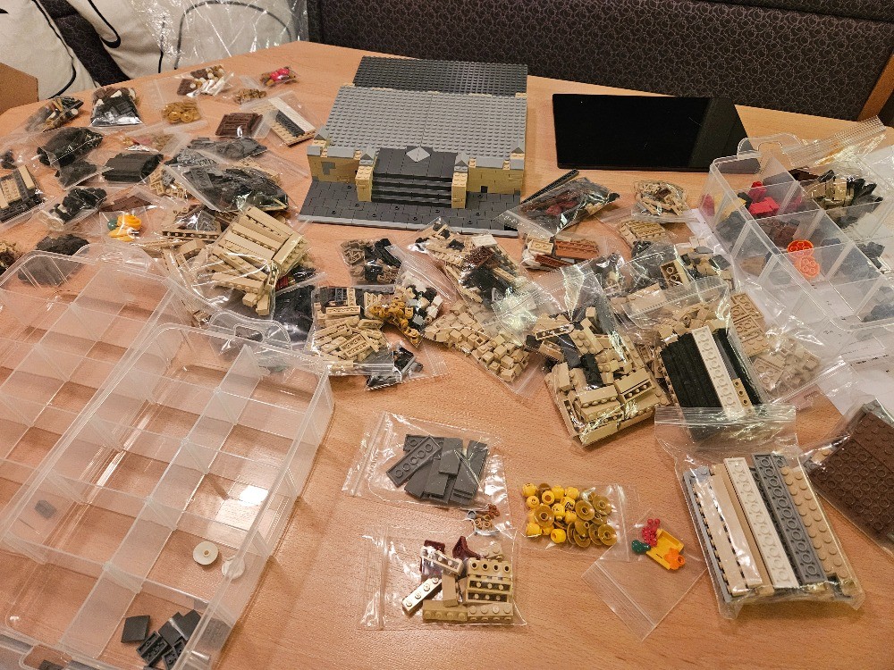 Welcome everyone to my new Moc: The Concert Hall! Celebrate the city's anniversary with tonights concert! Put on your finest clothes, take a seat and enjoy a musical evening in the most famous Concert Hall in the city! The combination of ancient columns and more modern window sections as well as the golden statue which is surrounded by two horses, creates a feeling of a classical theater front. Furthermore the decorated roof and the stairs contribute to this overall impression. So it is a very well-fitting expansion to your collection or plaza in the city. Climb the steps to the entrance and open the doors. Buy a ticket at the ticket counter. It's up to you, whether you want to sit in the parquet or the gallery for a better view. You've got a little time left? Great! Then get a pretzel or croissant at the snack bar on the other side. But don't dawdle - the concert is about to start, so make sure you get one of the last free seats! Experience the heroic sound of the brass section, the massive timpani roll and the vibrant tunes of the violins. Hear the lovely played harp and enjoy the clear tones of the woodwinds. Feel the excellent percussion solo and the outstanding performance of the piano player. What an exciting evening at the Concert Hall!