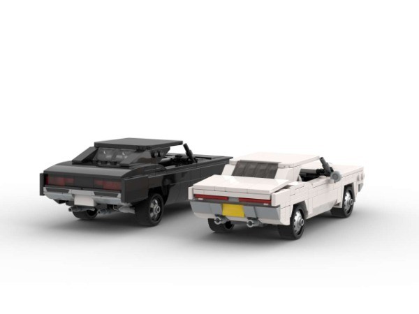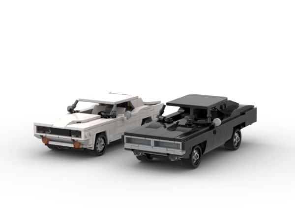 Two cars from iconic chase scene - Dodge Charger and Dodge Challenger. Models are sturdy, Charger fits one minifig and has full rollcage, Challenger fits three minifigs. If you have any questions about this MOC, PM me or visit my profile!