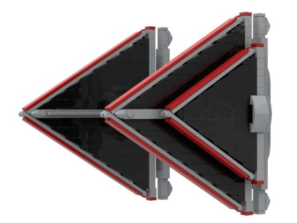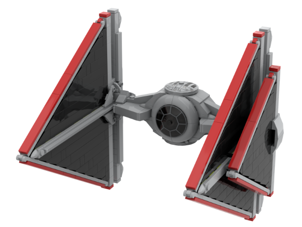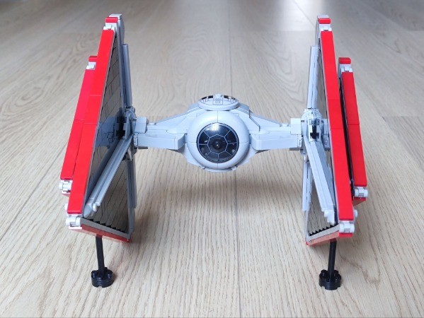 Sith Tie Fighter "Tie dagger", although it flashed by in the movie, its unique triangle caught my great interest.So I am trying to design the smoothest and perfect triangle in my heart. In my design, to make a 3 studs cockpit is not a simple work, it can just sit a minifig pilot. And thanks for inthert_builds and nl_twp 's brilliant cockpit bubble design 65617 connection, it allows me to connect even in a narrow space and is quite stable, I used this way to connect my front cockpit bubble. The structure has a certain degree of stability, and adults have no problem playing with it. Dimensions:20.5x23.6x23.0cm, same size as 75300
